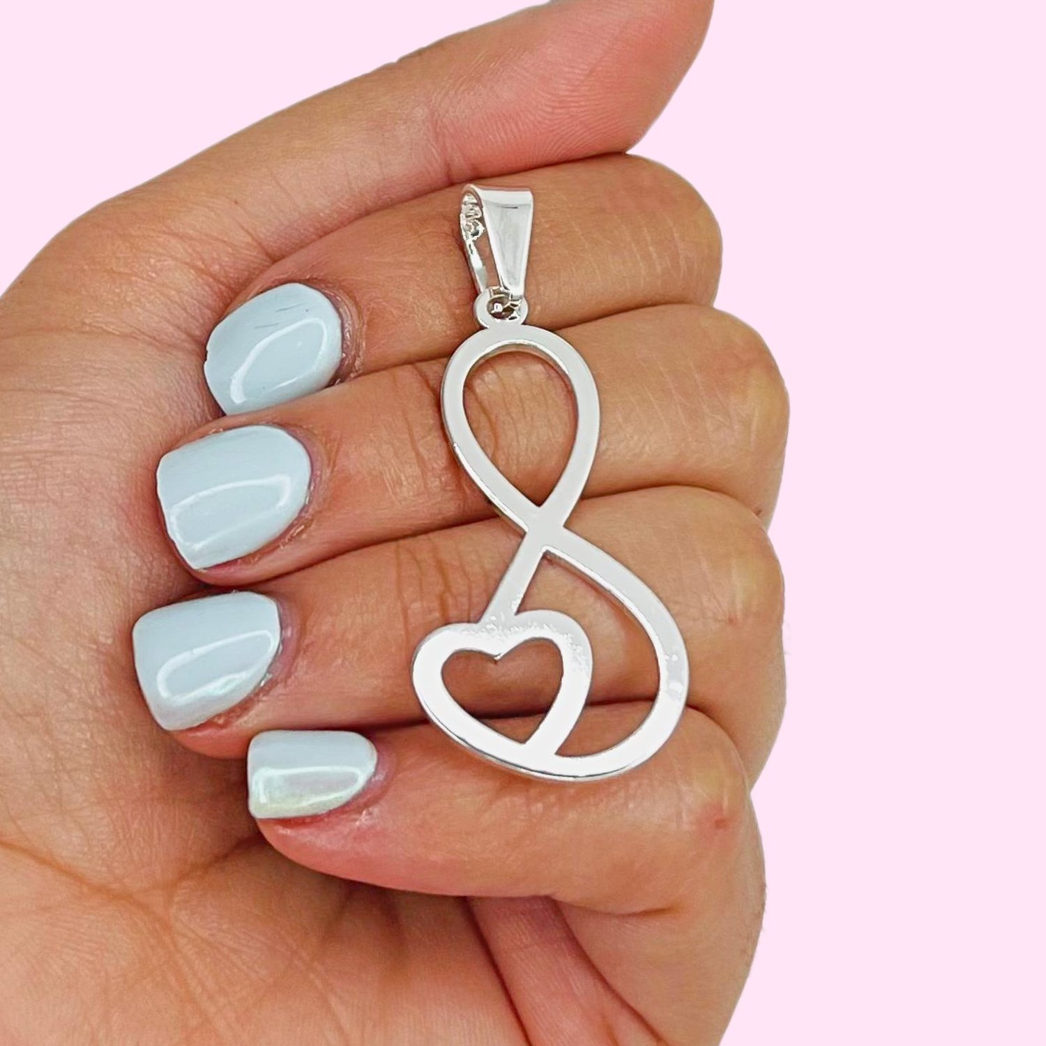 Dije Infinito con Corazon 50mm Acero Blanco