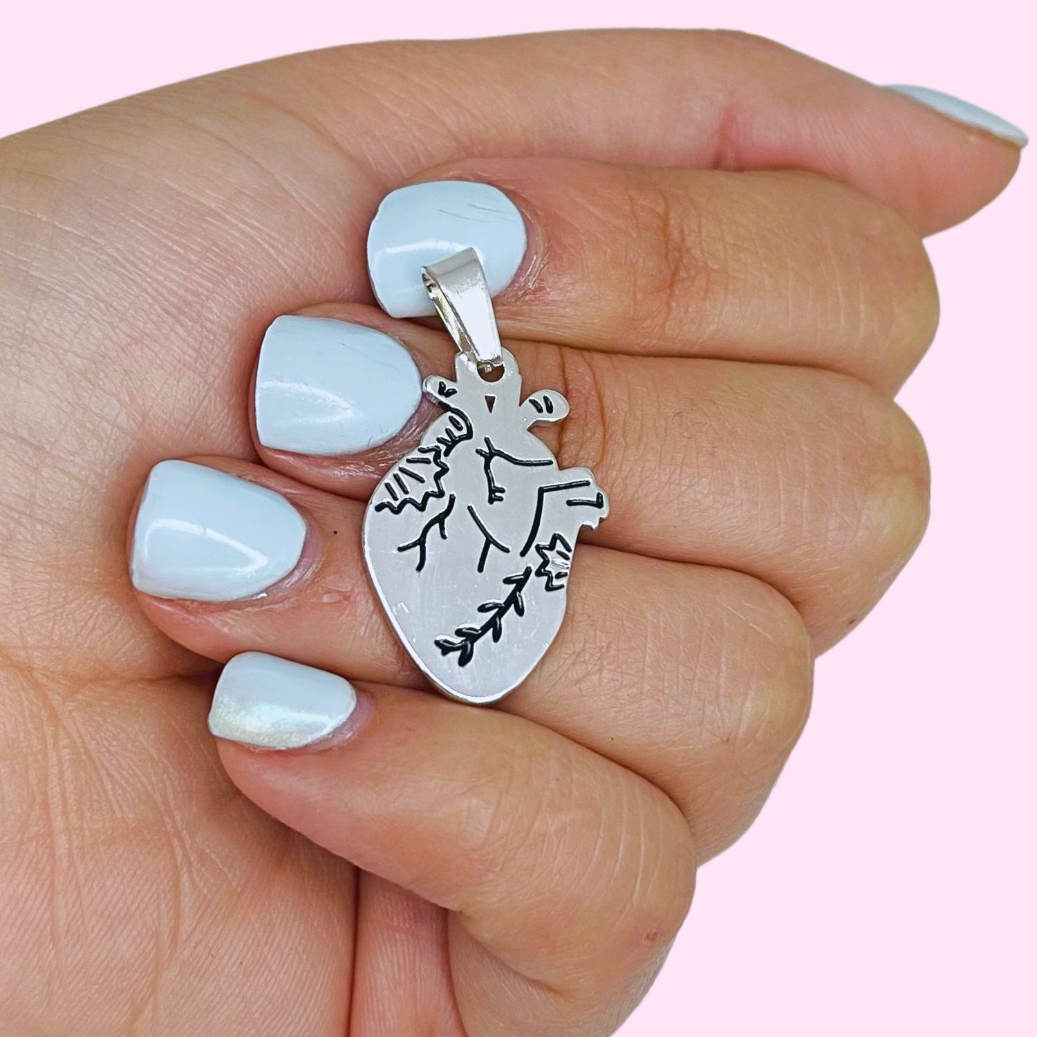 Dije Corazon Real Humano 30mm Acero Blanco