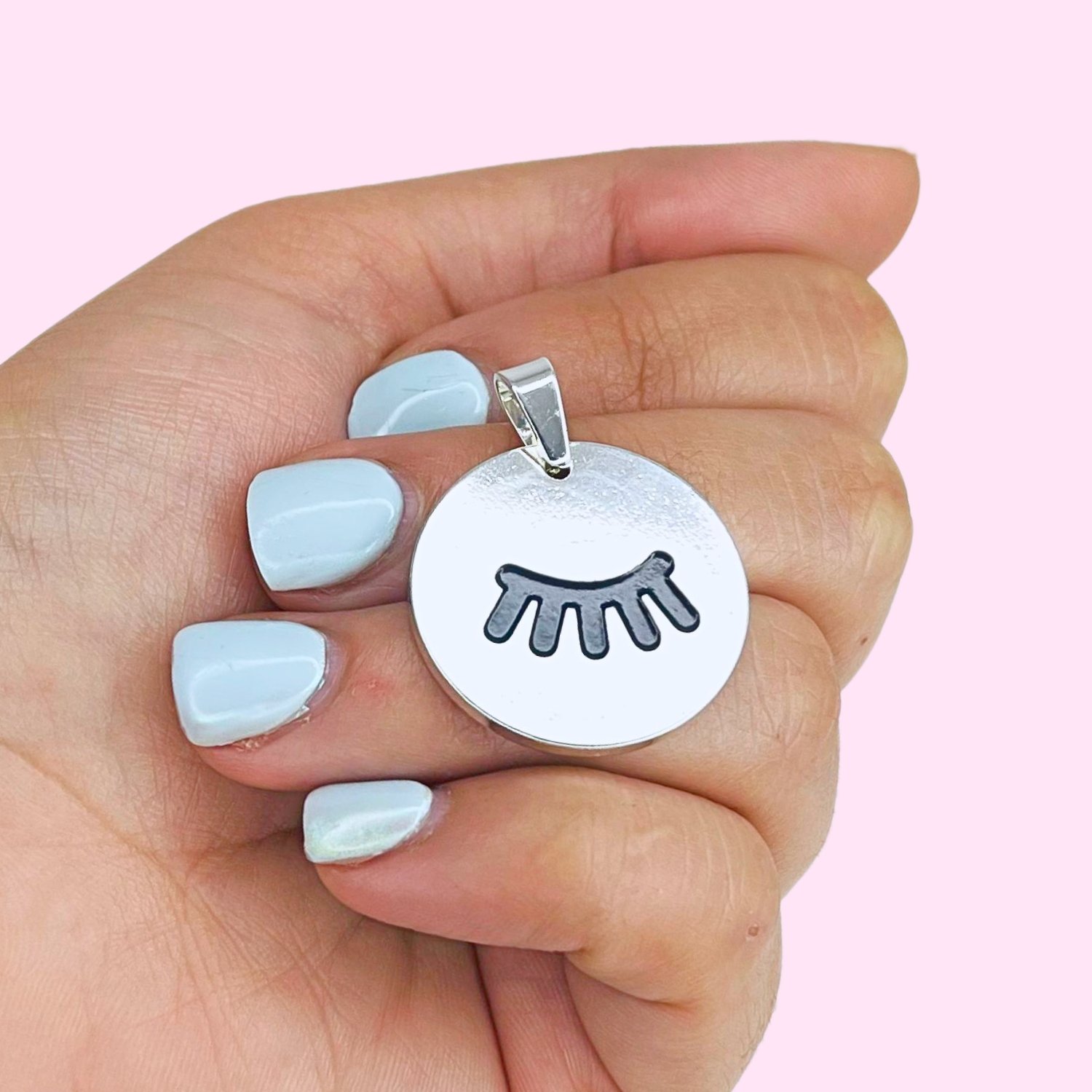 Dije Medalla con Pestañas 30mm Acero Blanco
