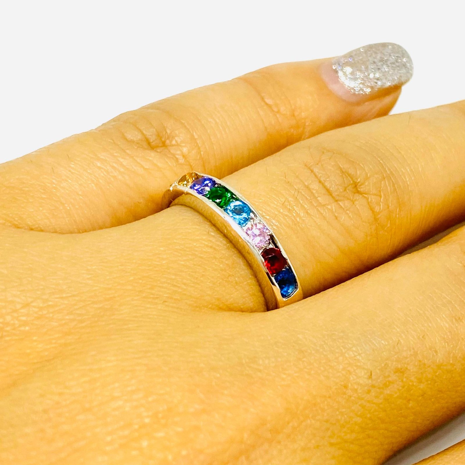 Anillo Medio SinFin con Piedras multicolor de Plata 925