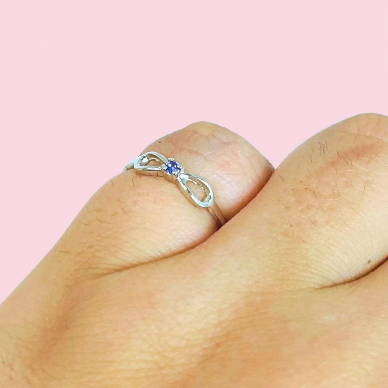 Anillo Infinito Fino con Piedra Amatista de Plata 925