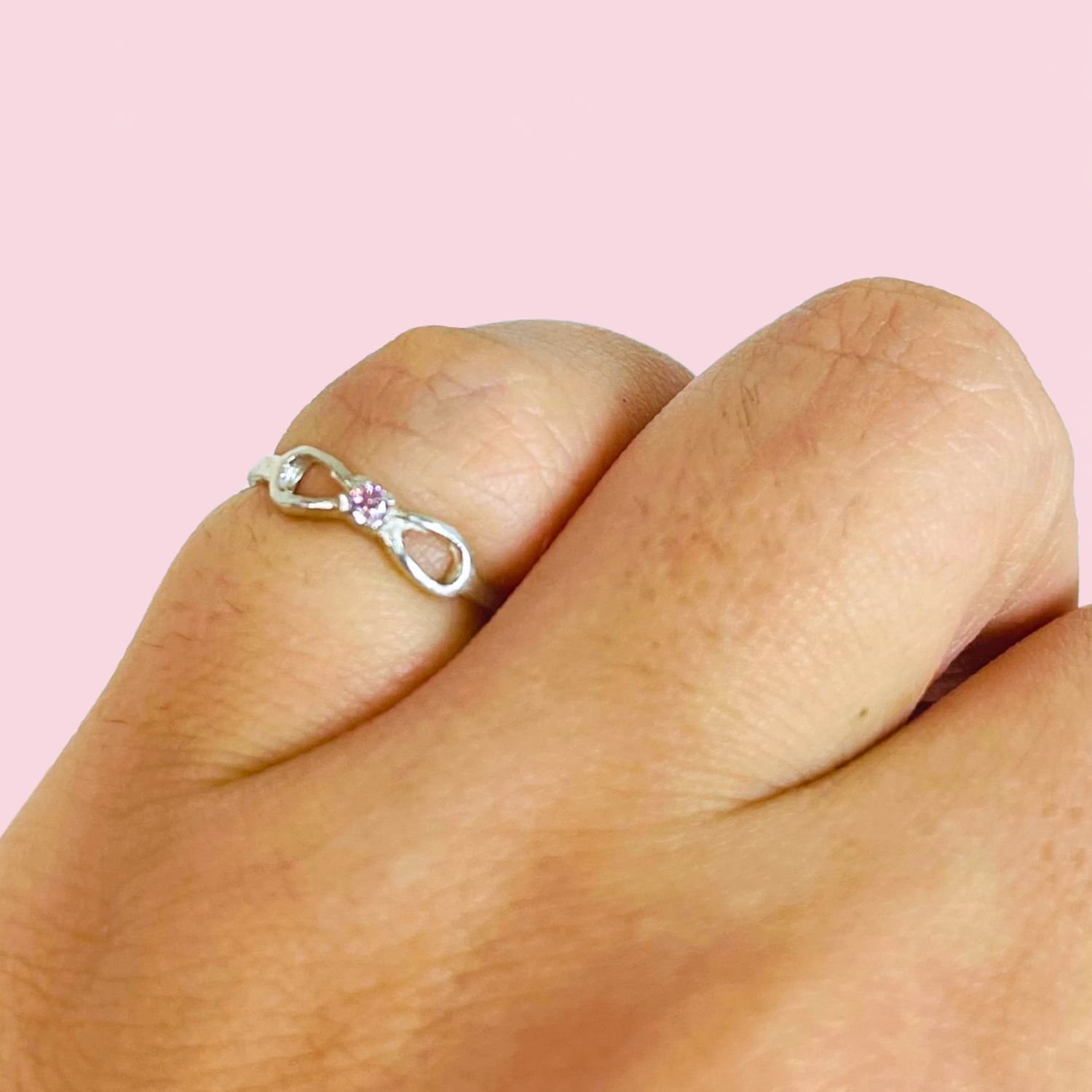 Anillo Infinito Fino con Piedra Rosa a de Plata 925