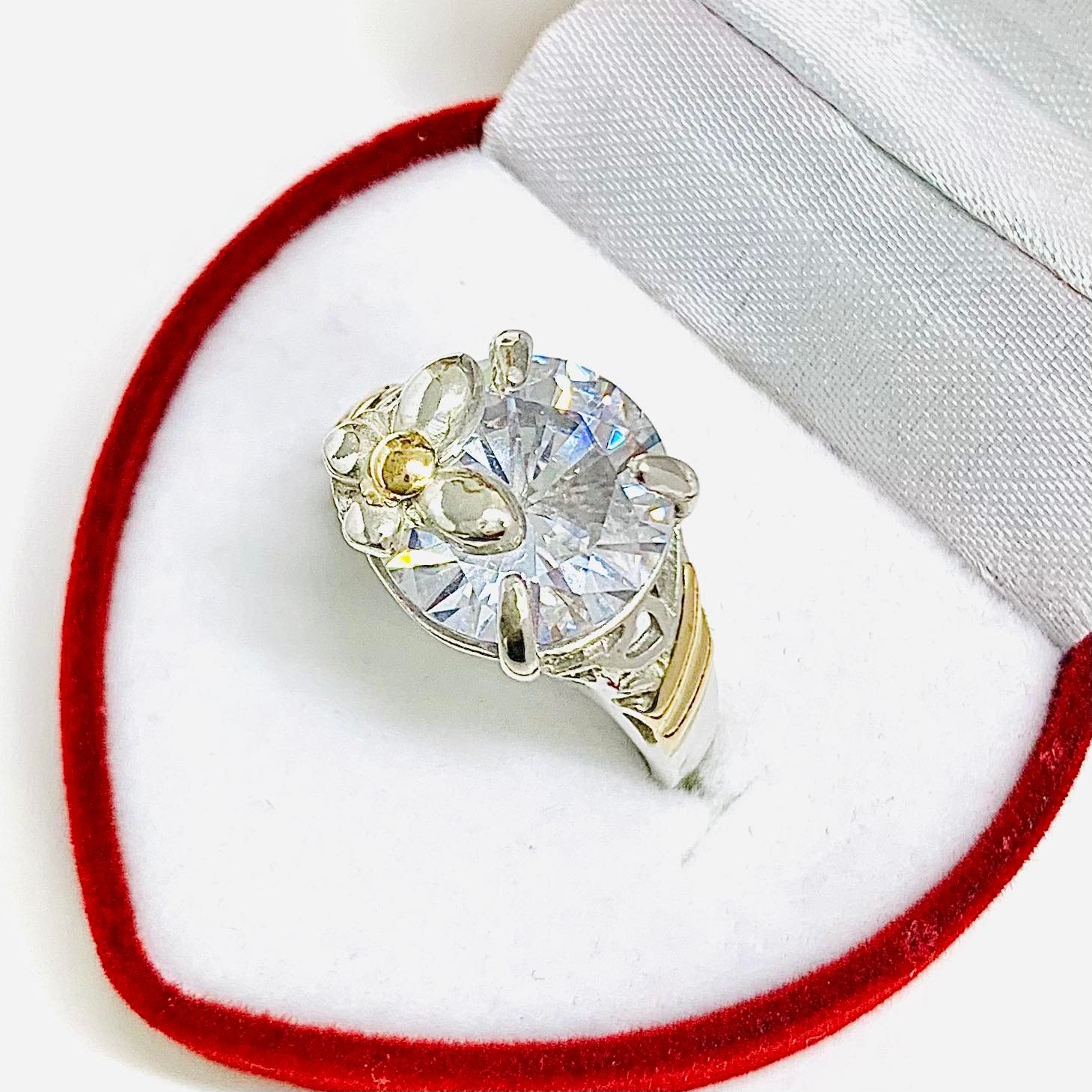 Anillo Fiorella con Piedra Blanca Plata y Oro