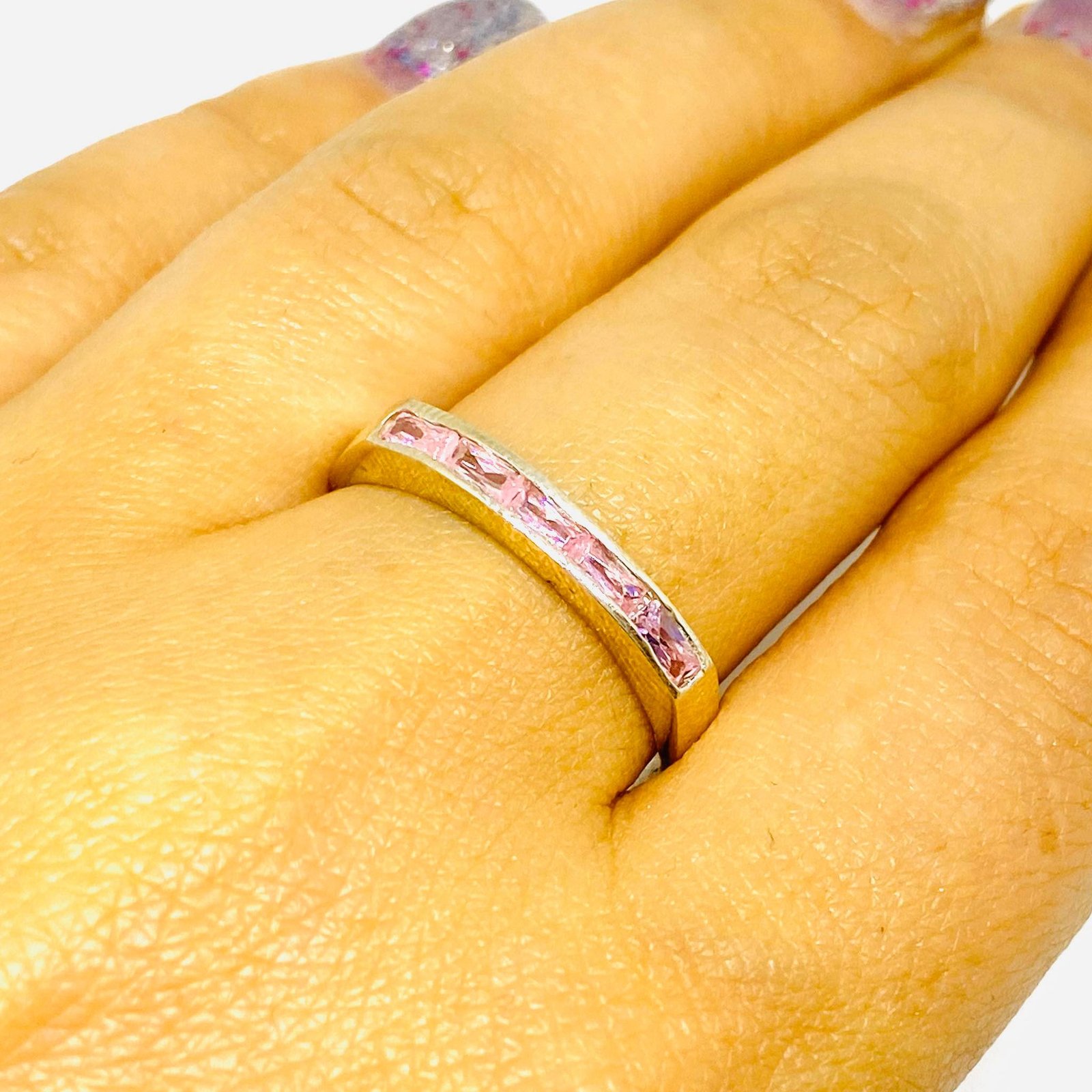 Anillo Medio Sinfin Baguette Rosa de Plata 925