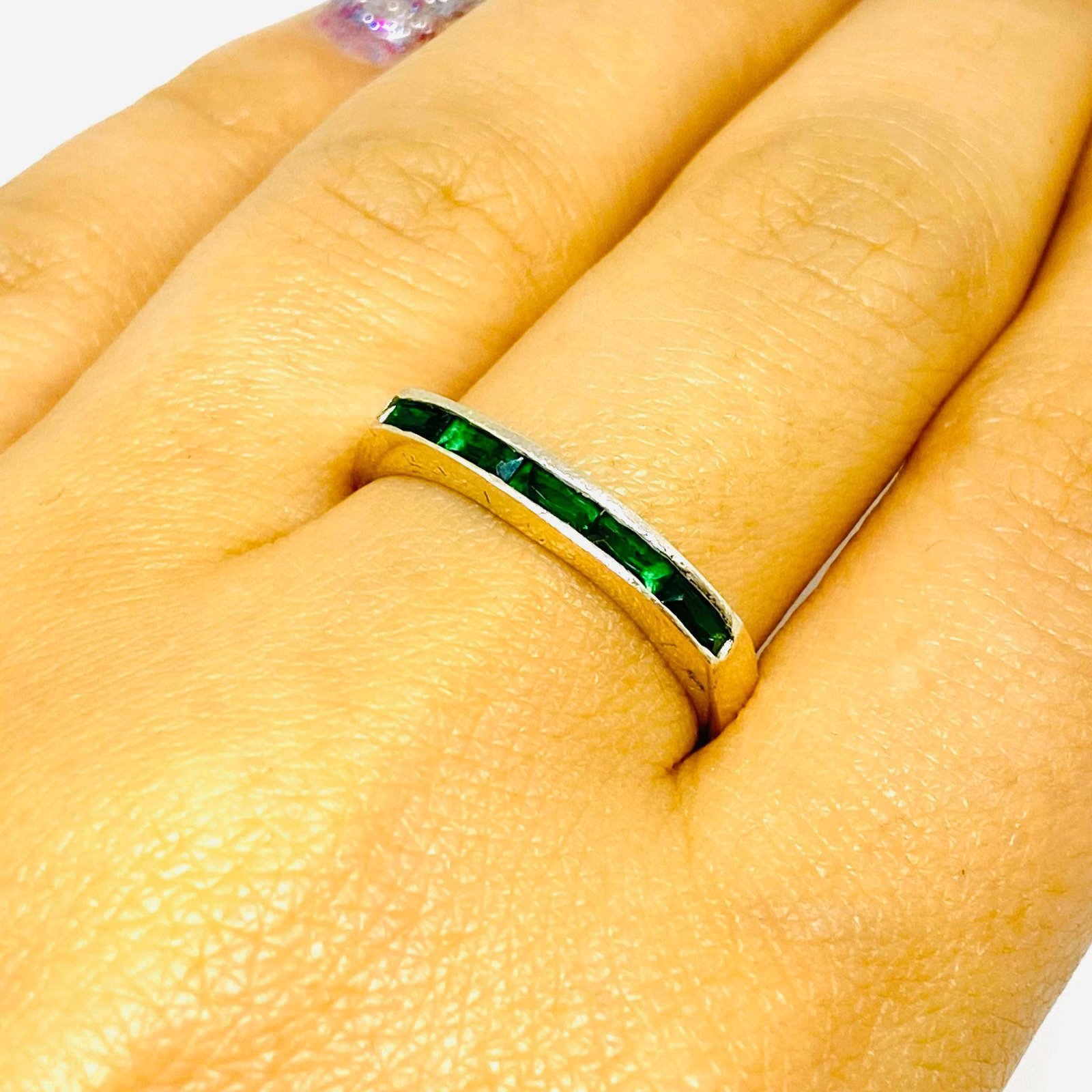 Anillo Medio Sinfin Baguette Esmeralda de Plata 925