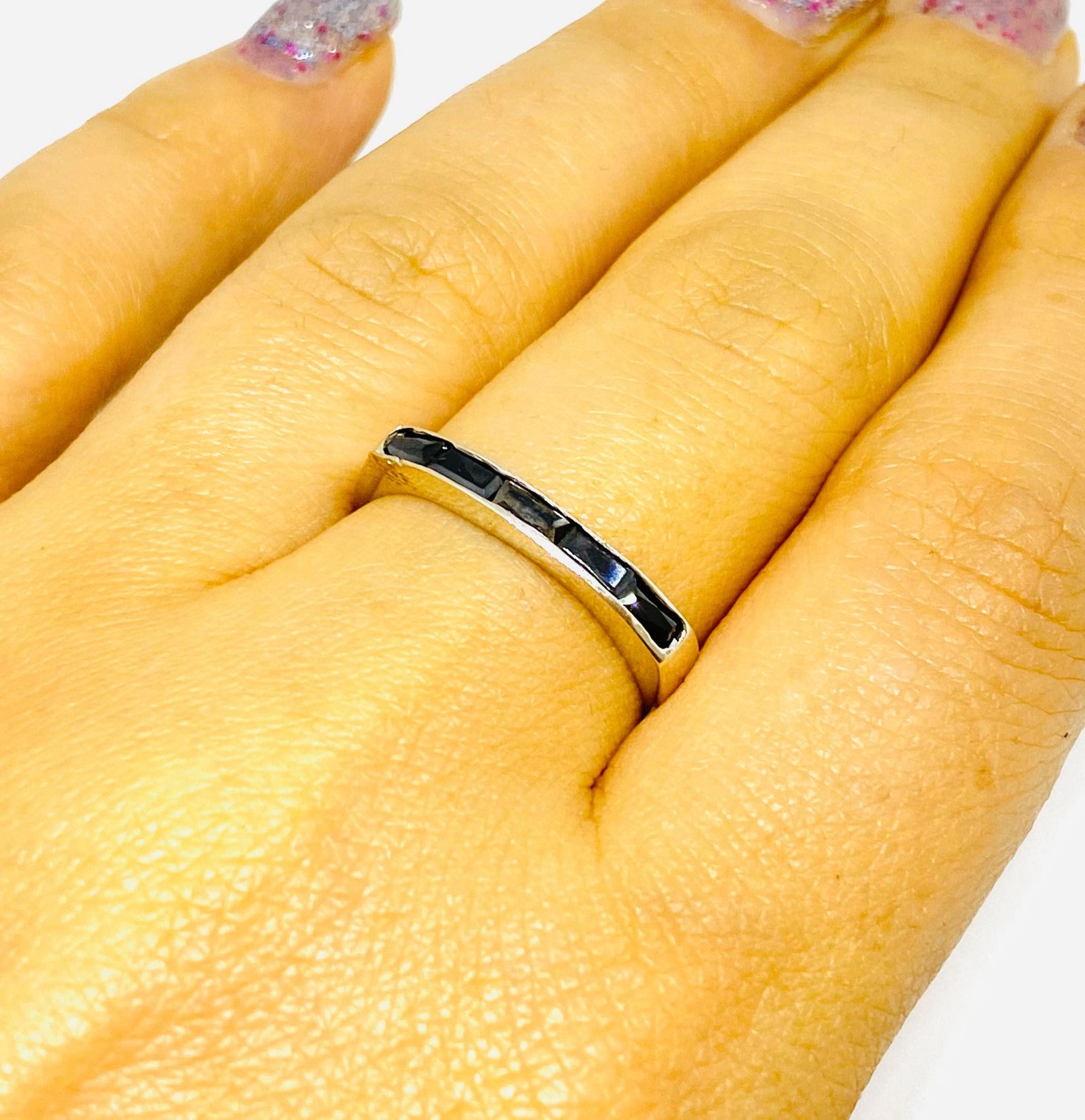 Anillo Medio Sinfin Baguette Negro de Plata 925