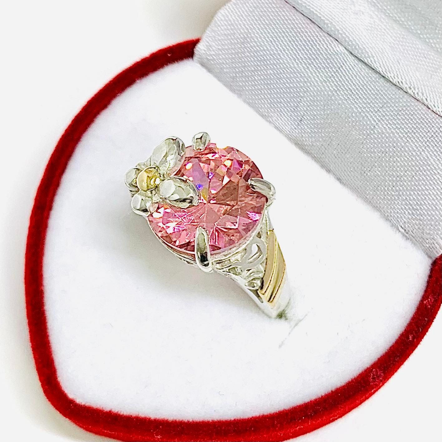 Anillo Fiorella con Piedra Rosa Plata y Oro