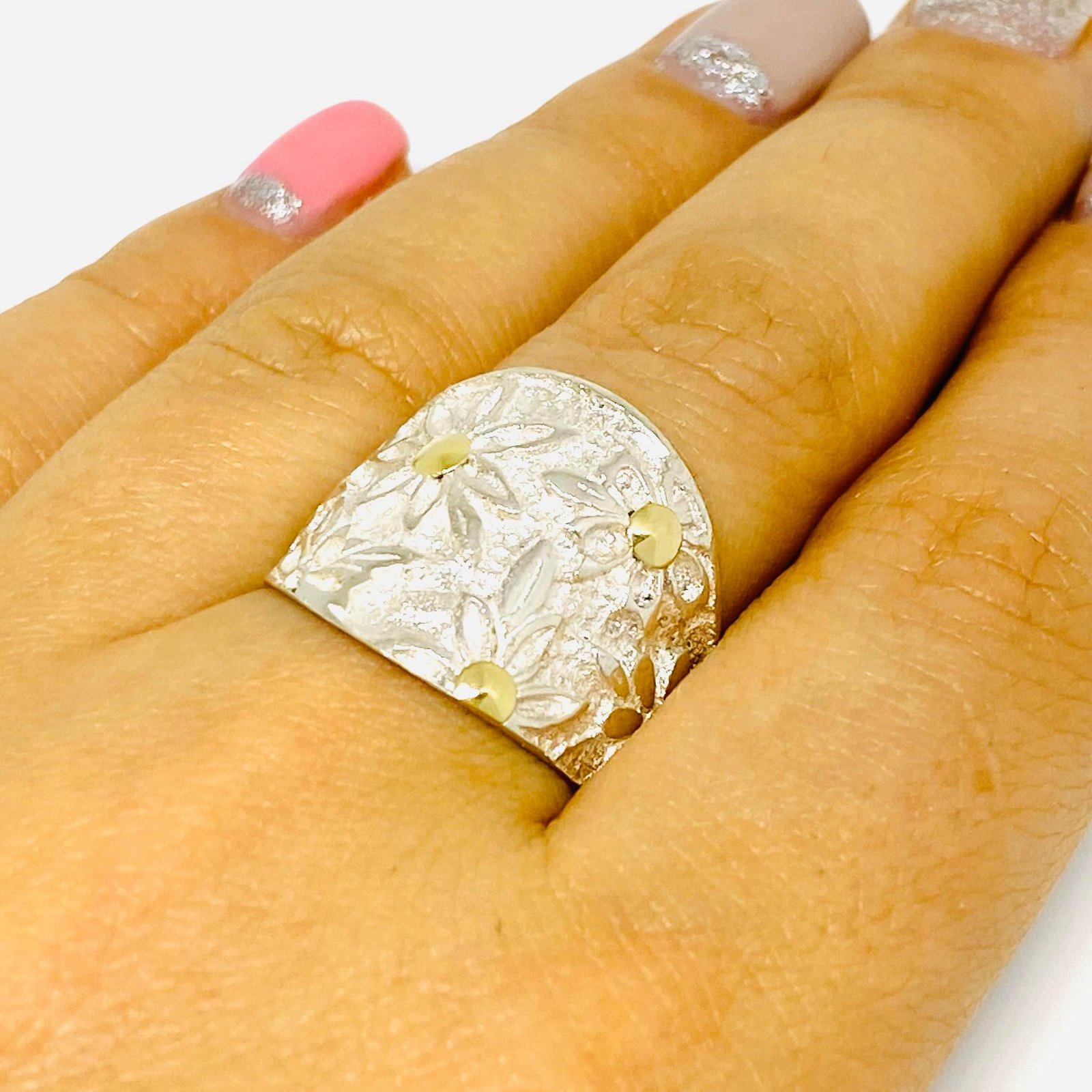 Anillo con Flores Hermosas de Plata y Oro