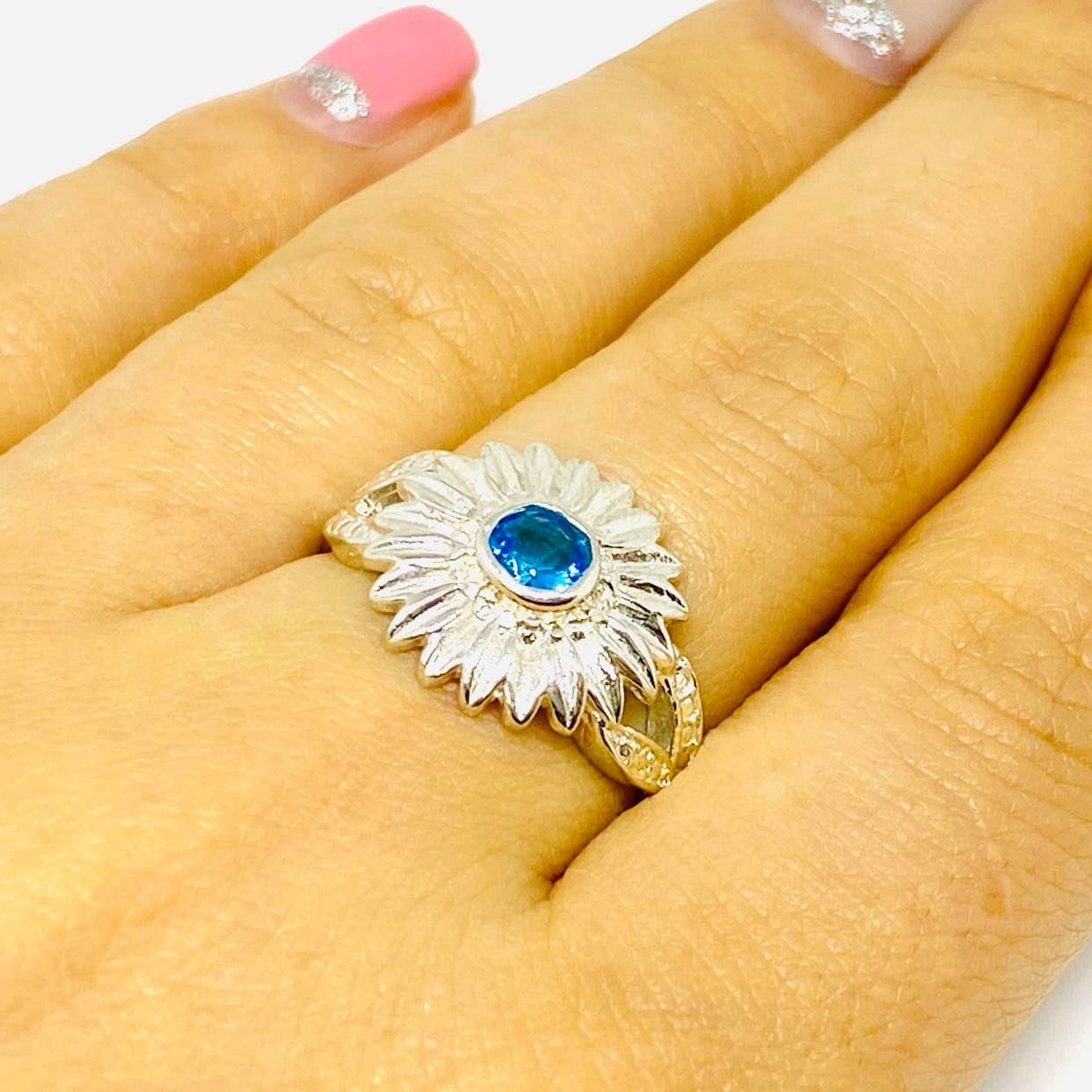 Anillo Flor de sueño con Cubic Aguamarina Plata 925