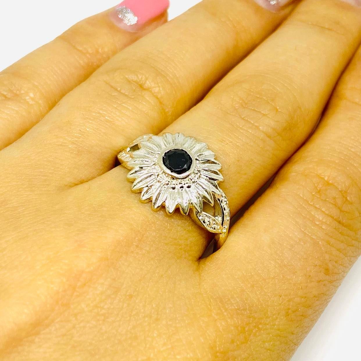 Anillo Flor de sueño con Cubic Negro Plata 925