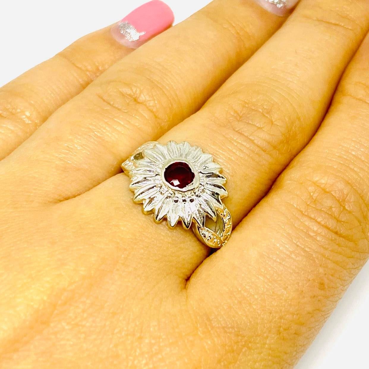 Anillo Flor de sueño con Cubic Rubi Plata 925