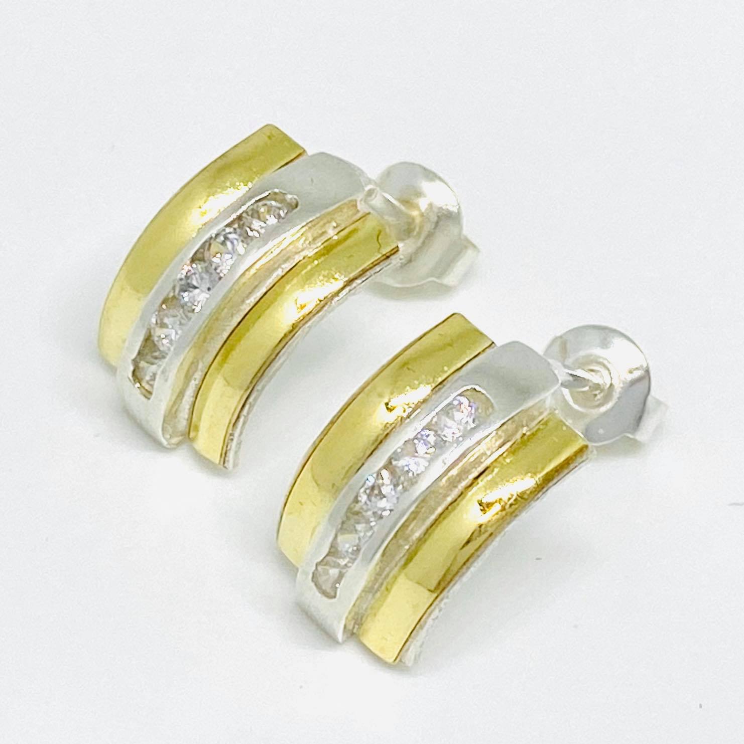 Aros Medio Sinfin con piedras Blancas Plata y Oro