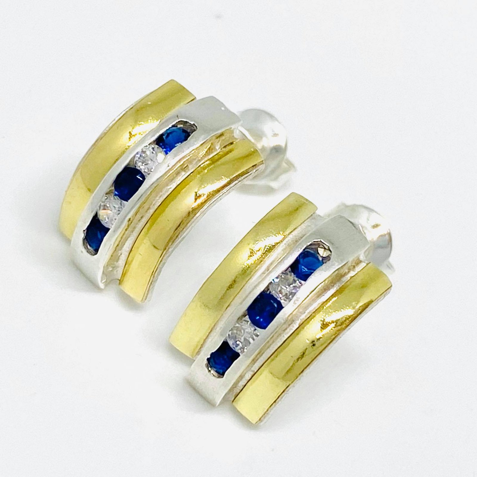 Aros Medio Sinfin con piedras combinadas Blanco-Zafiro Plata y Oro