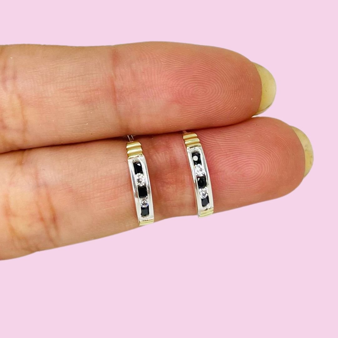 Aros Medio Sinfin con piedras combinadas Blanco-Negro Plata y Oro