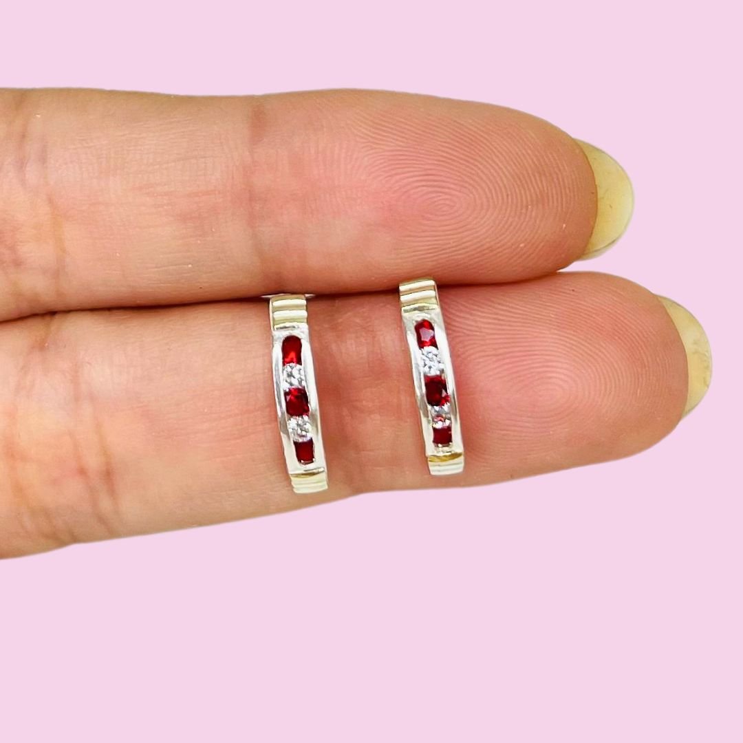 Aros Medio Sinfin con piedras combinadas Blanco-Rubi Plata y Oro