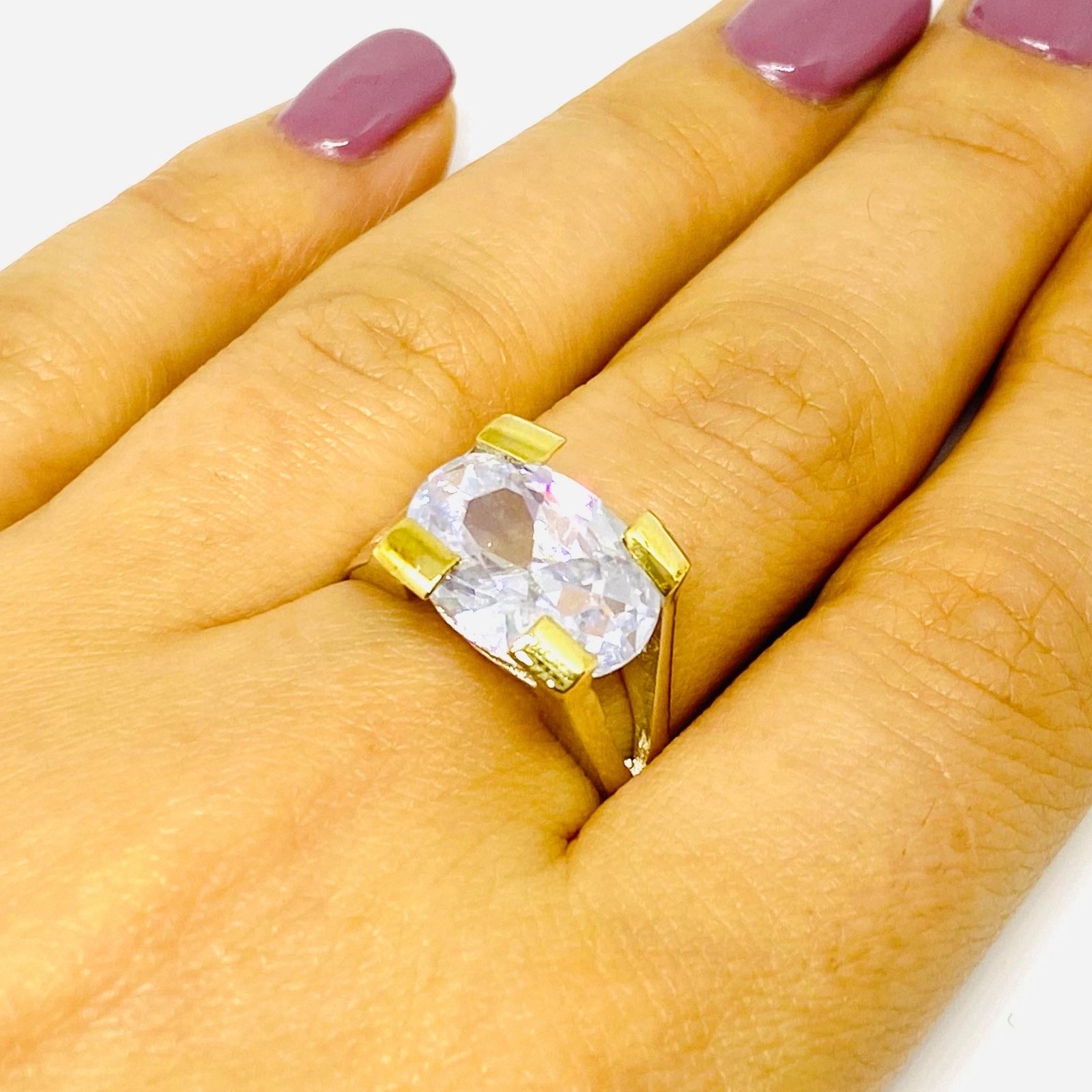 Anillo Favorito con Cubic Oval Blanco Plata y Oro