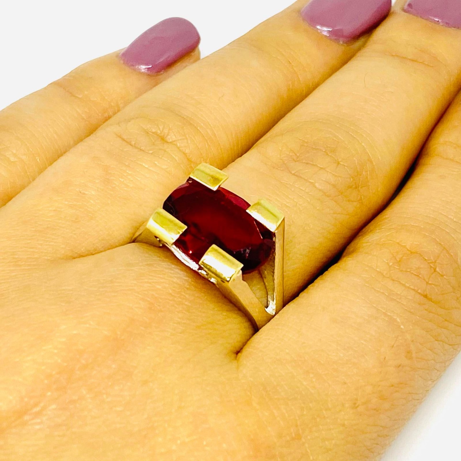 Anillo Favorito con Cubic Oval Rubi Plata y Oro