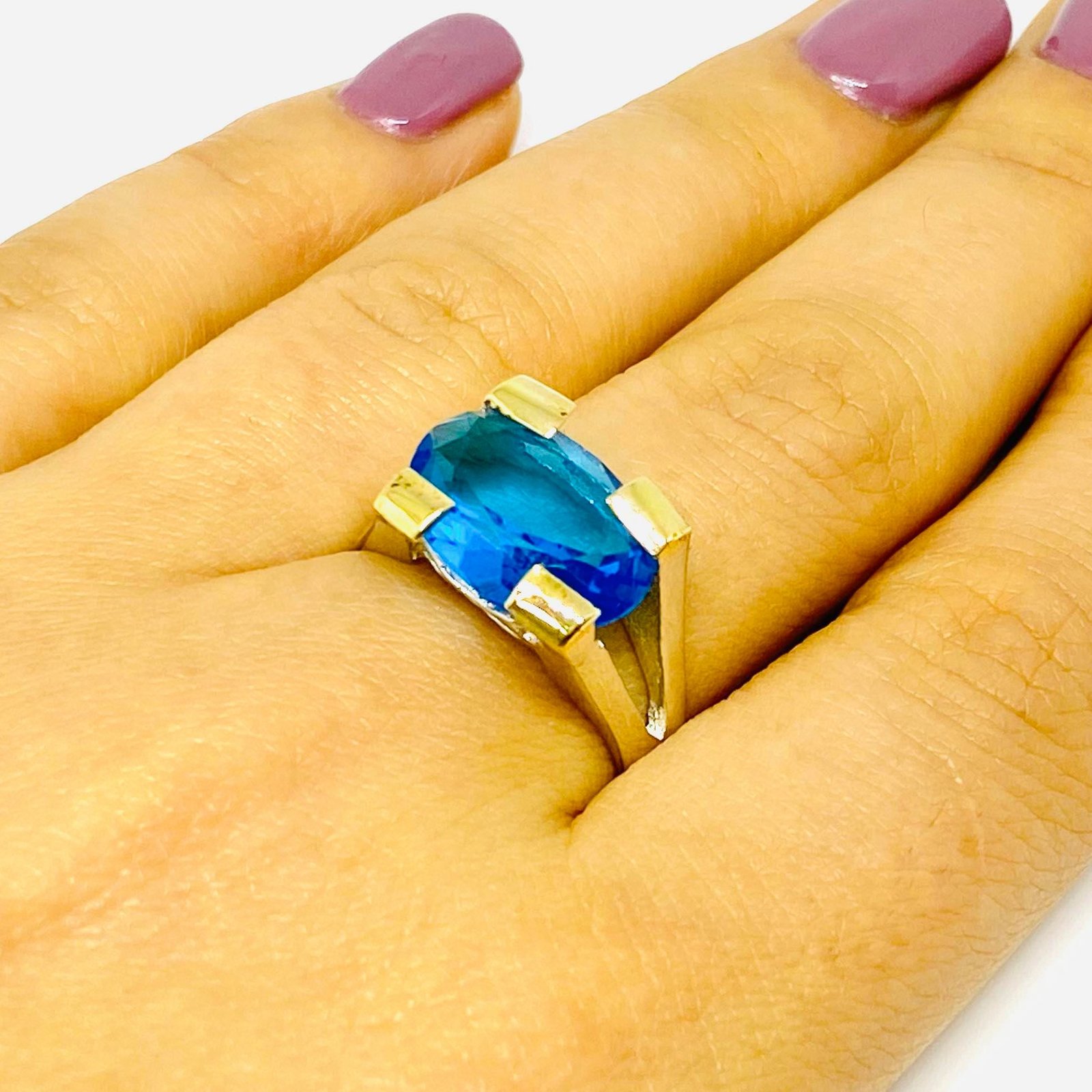 Anillo Favorito con Cubic Oval Aguamarina Plata y Oro