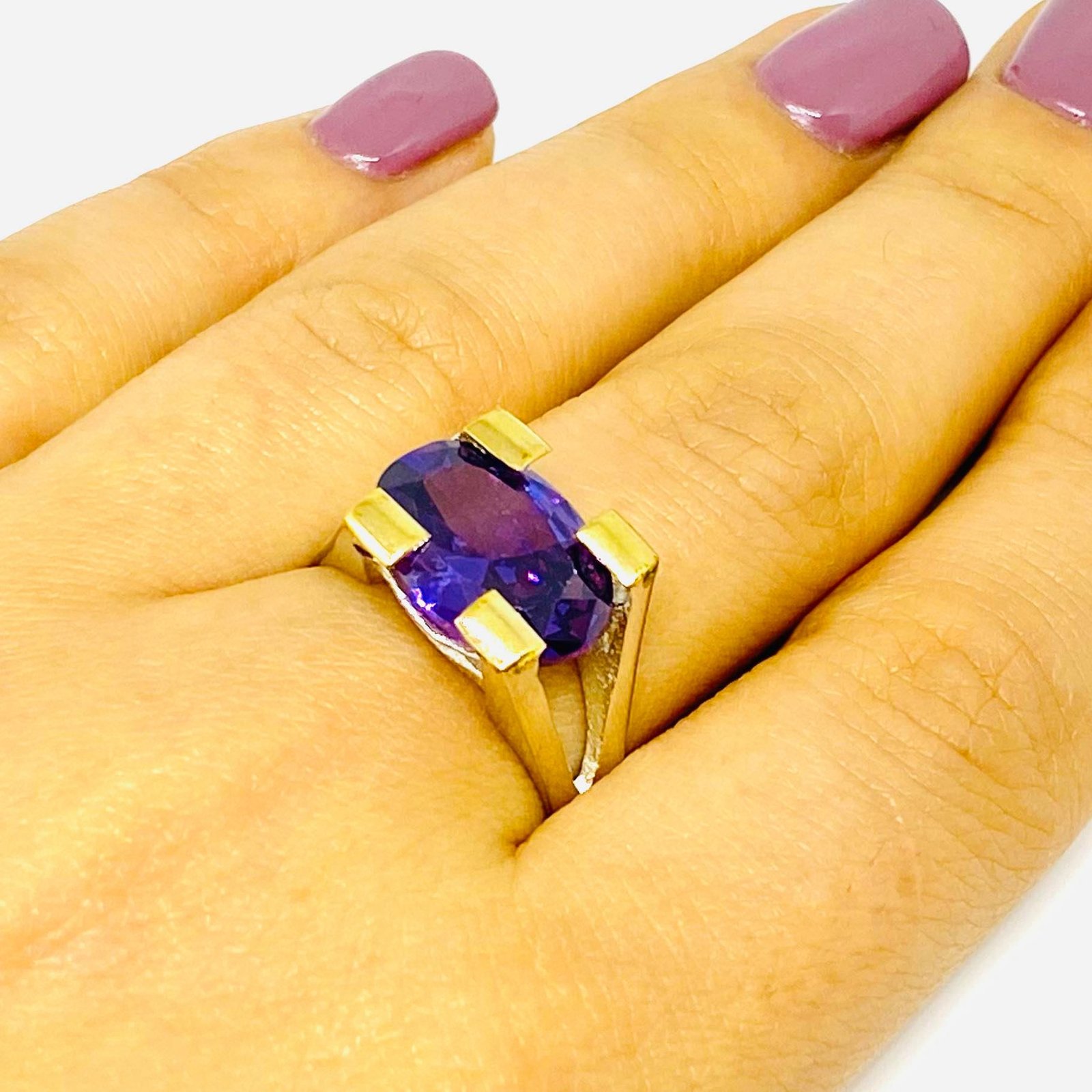 Anillo Favorito con Cubic Oval Amatista Plata y Oro