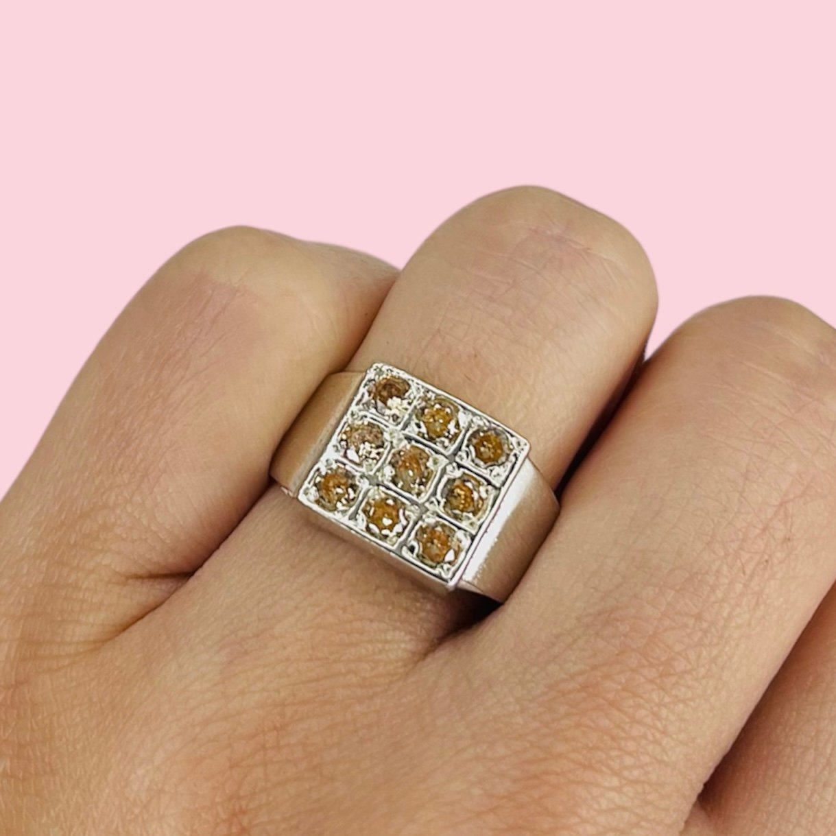 Anillo sello Cuadrado con Piedras Ambar Plata 925