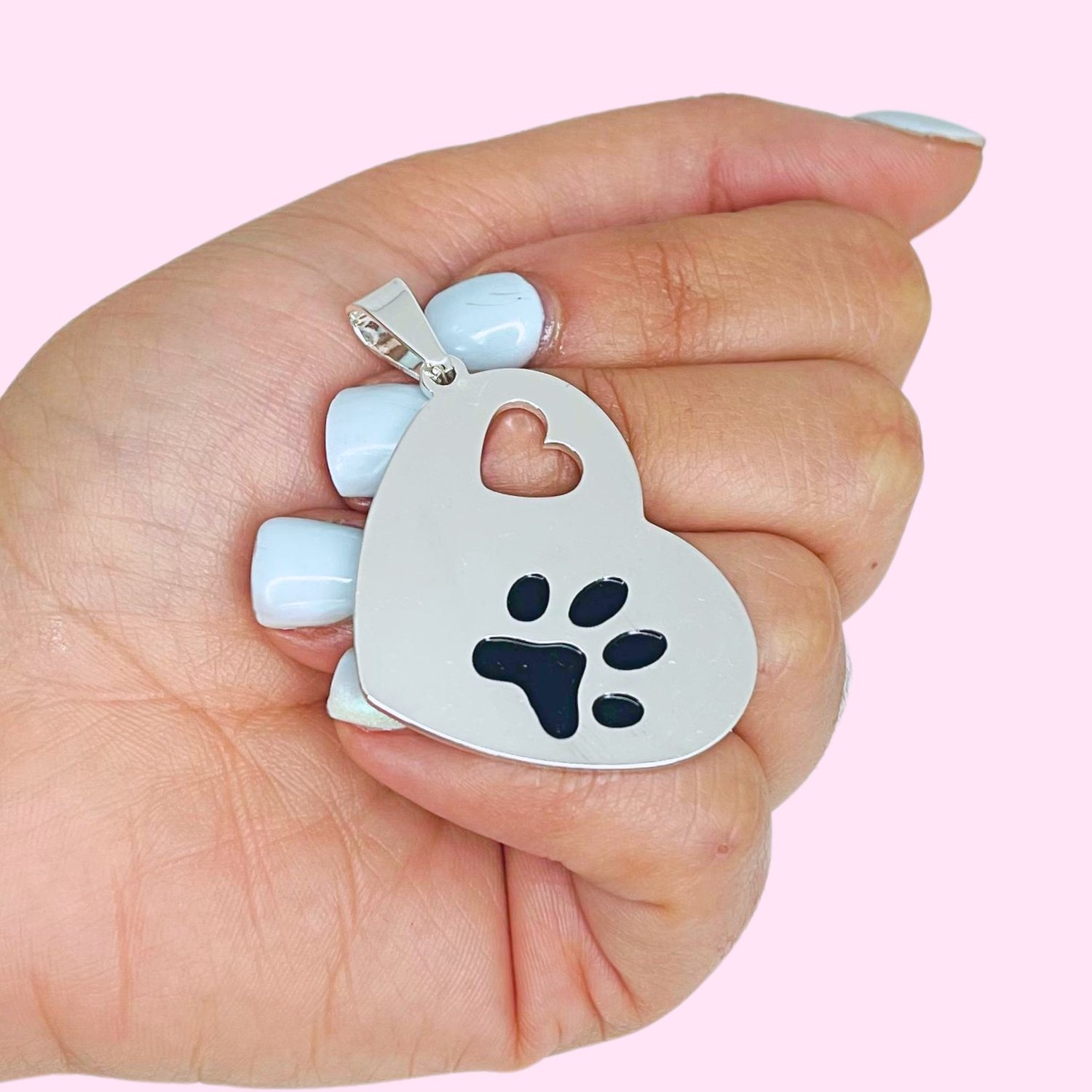 Dije Corazon con Pata de Acero Blanco