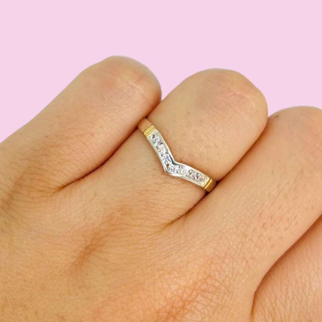Anillo Forma v blanco de Plata y Oro