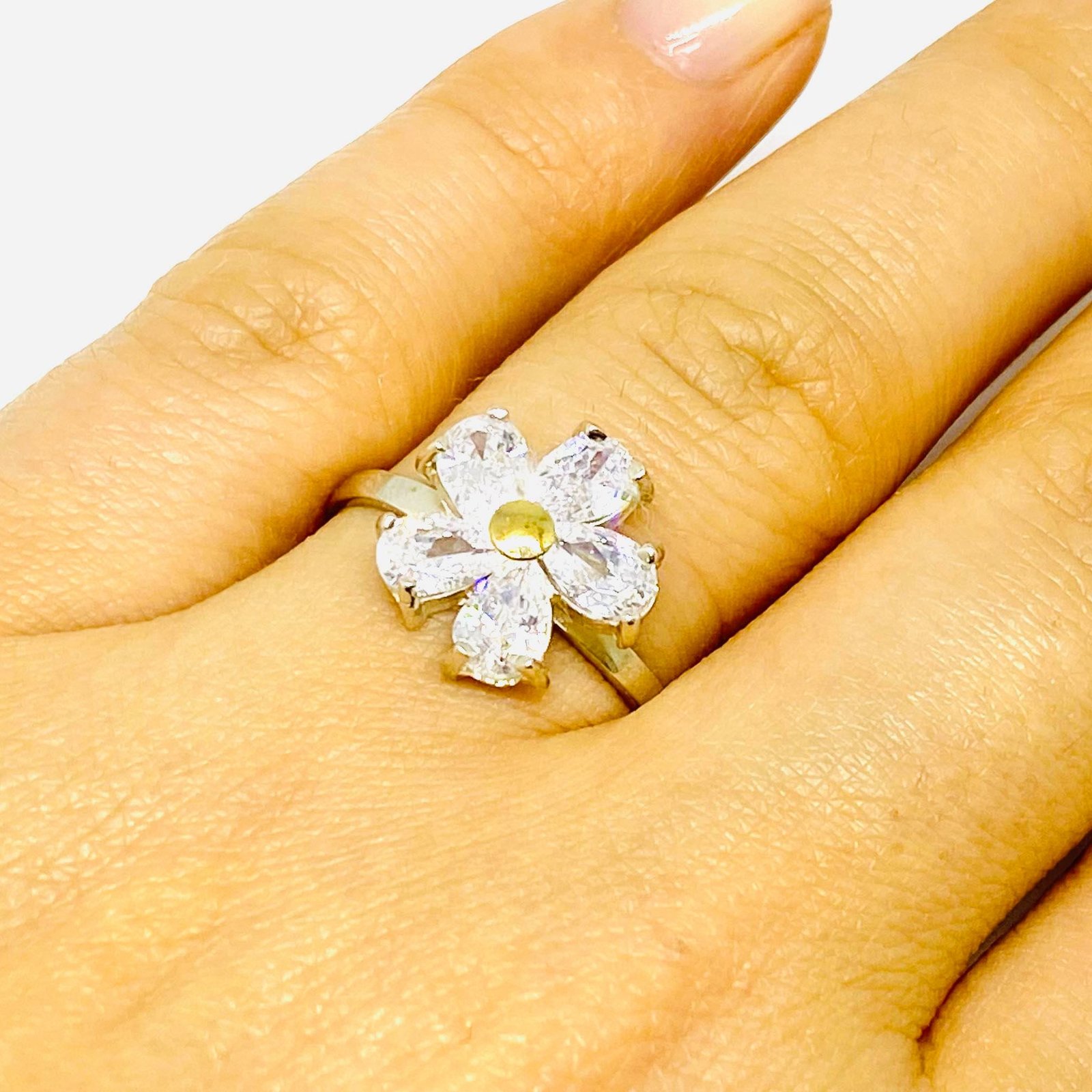 Anillo Flor Radiantede Blanco Plata y Oro
