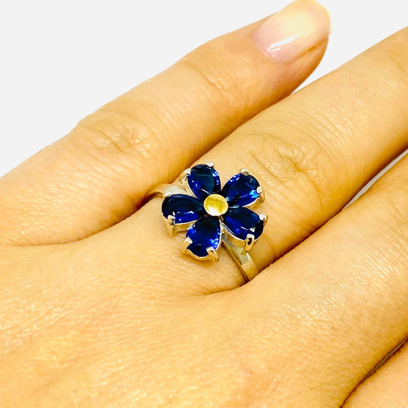 Anillo Flor Radiantede Zafiro Plata y Oro