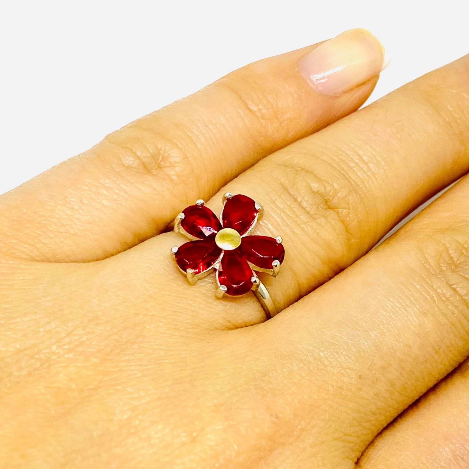Anillo Flor Radiantede Rubi Plata y Oro