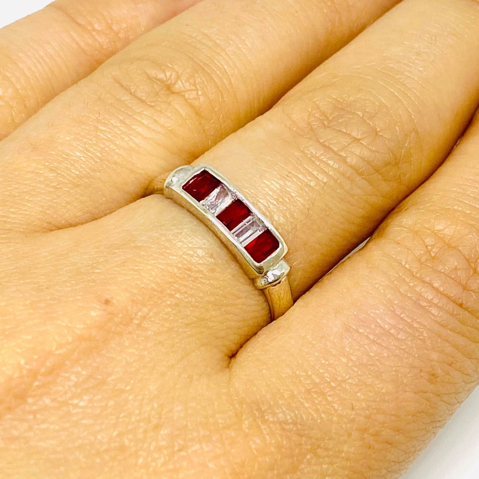 Anillo Con Piedras Baguette Blanco-Rubi Plata 925