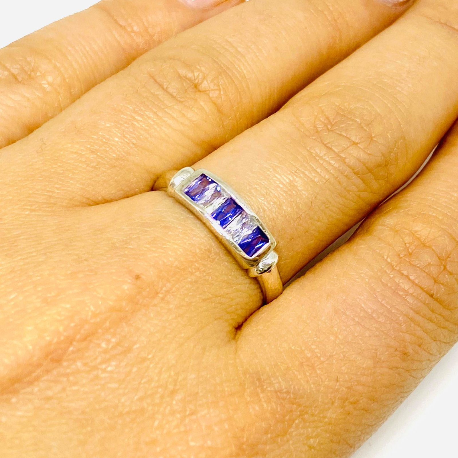 Anillo Con Piedras Baguette Blanco-Amatista Plata 925