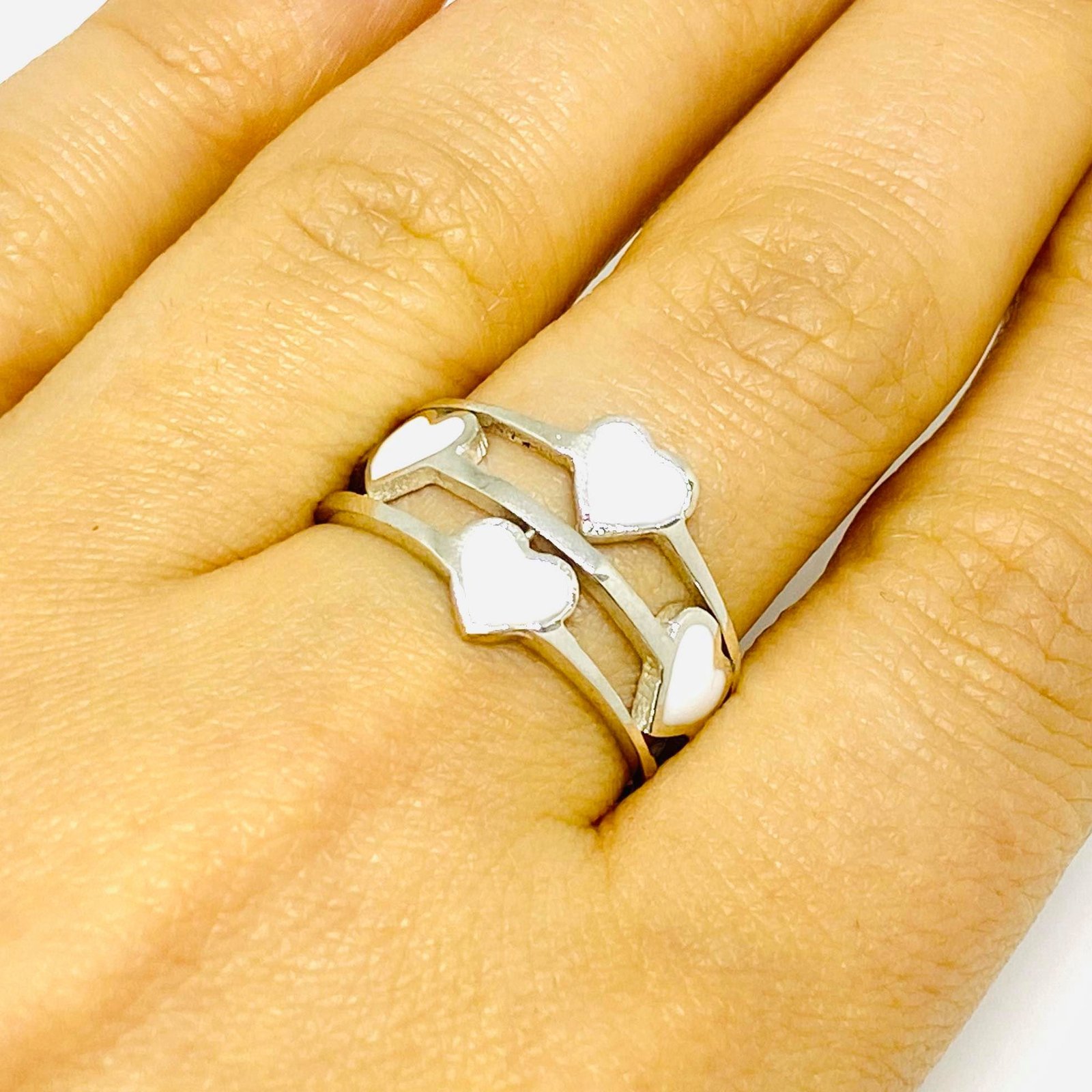 Anillo Corazones Blancos Esmaltados Plata 925