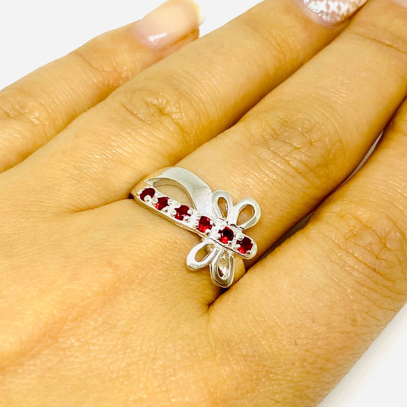 Anillo Libelula Con Micropave Rubi de Plata 925