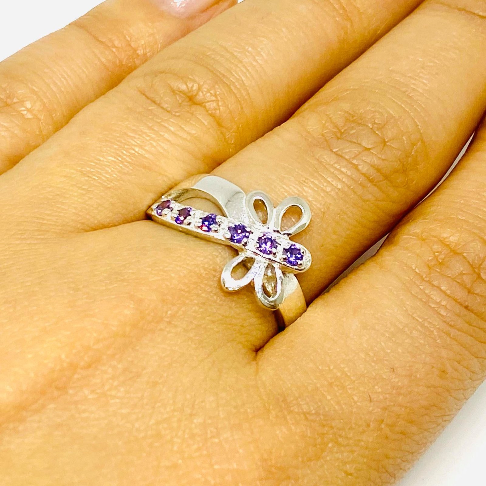 Anillo Libelula Con Micropave Amatista de Plata 925