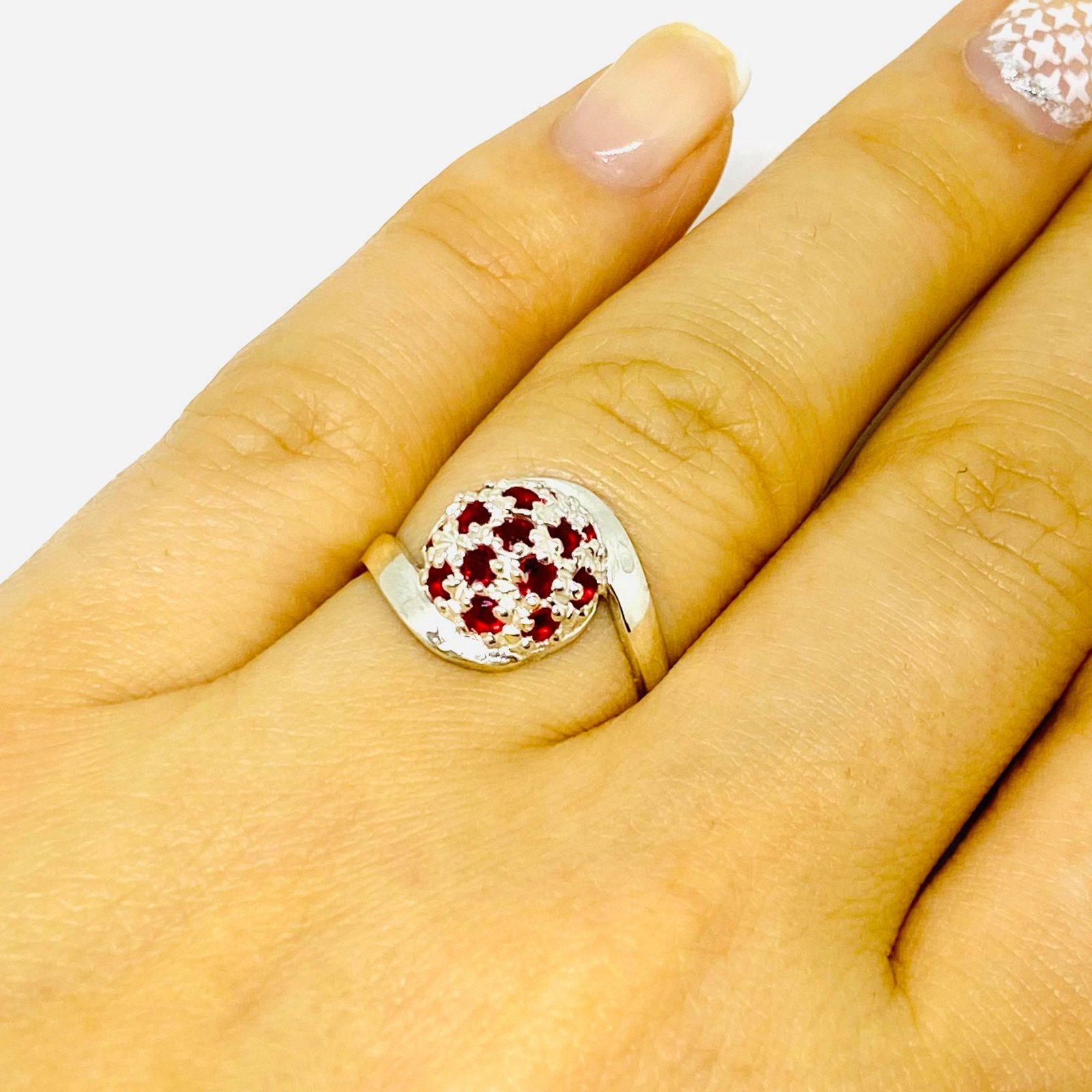 Anillo Frutillita con Onda cubic Rubi de Plata 925