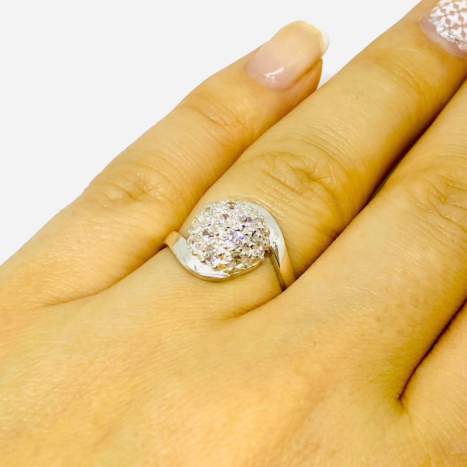 Anillo Frutillita con Onda cubic Blanco de Plata 925