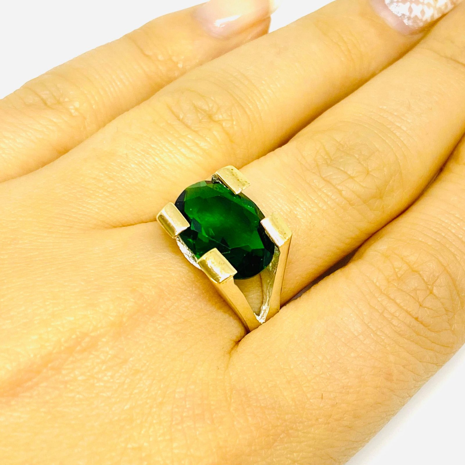 Anillo Favorito con Cubic Oval Esmeralda Plata y Oro