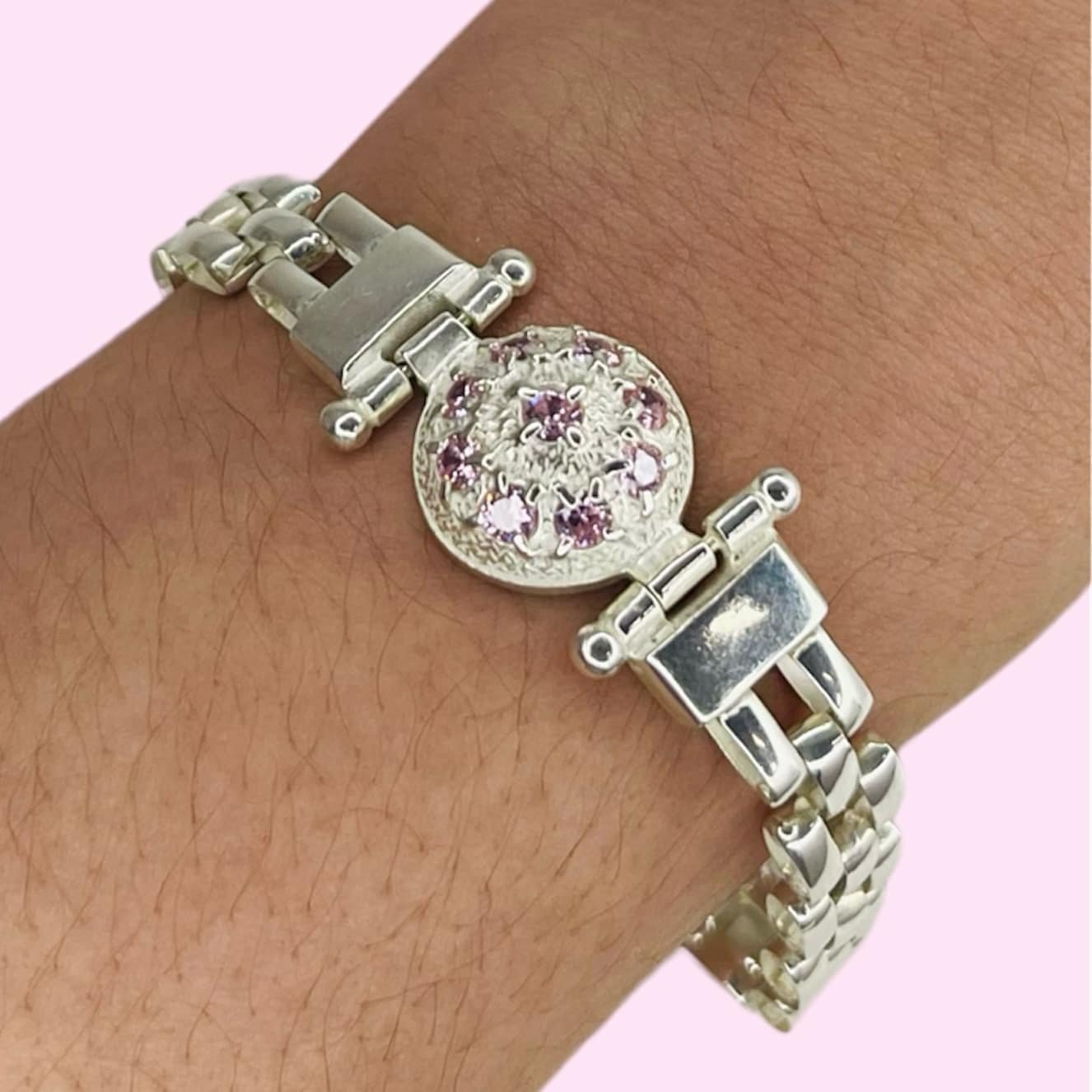 Pulsera Panter Ancho con Frutillon Rosa de Plata 925
