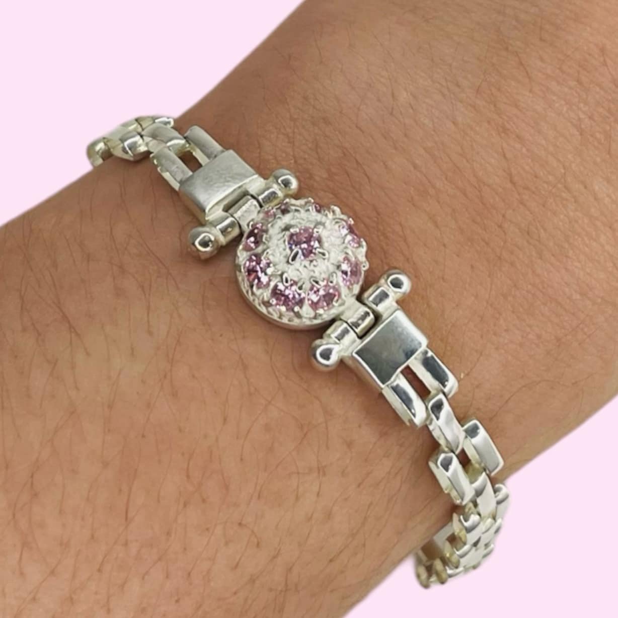 Pulsera Panter Fino con Frutillita Rosa de Plata 925