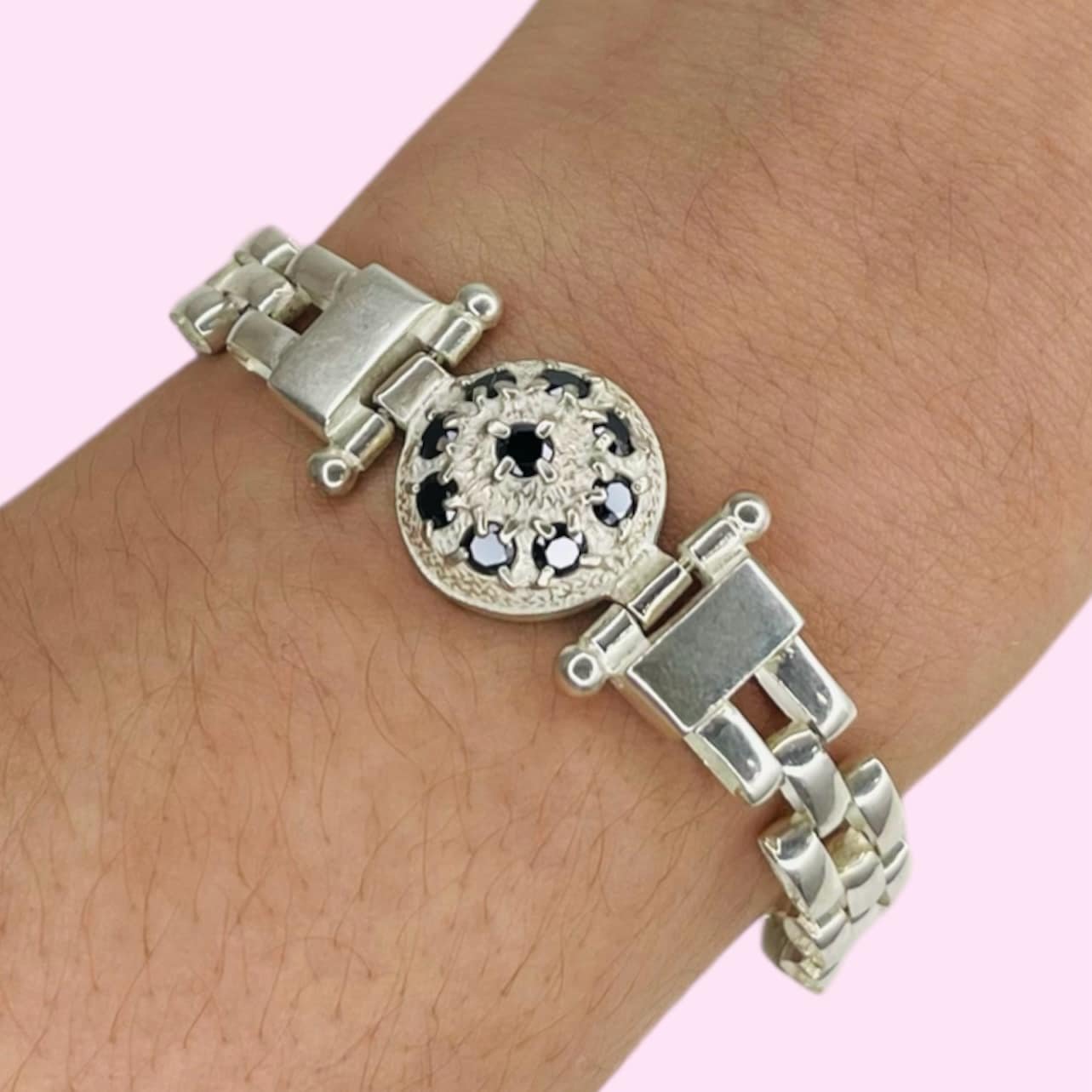 Pulsera Panter Ancho con Frutillon Negro de Plata 925