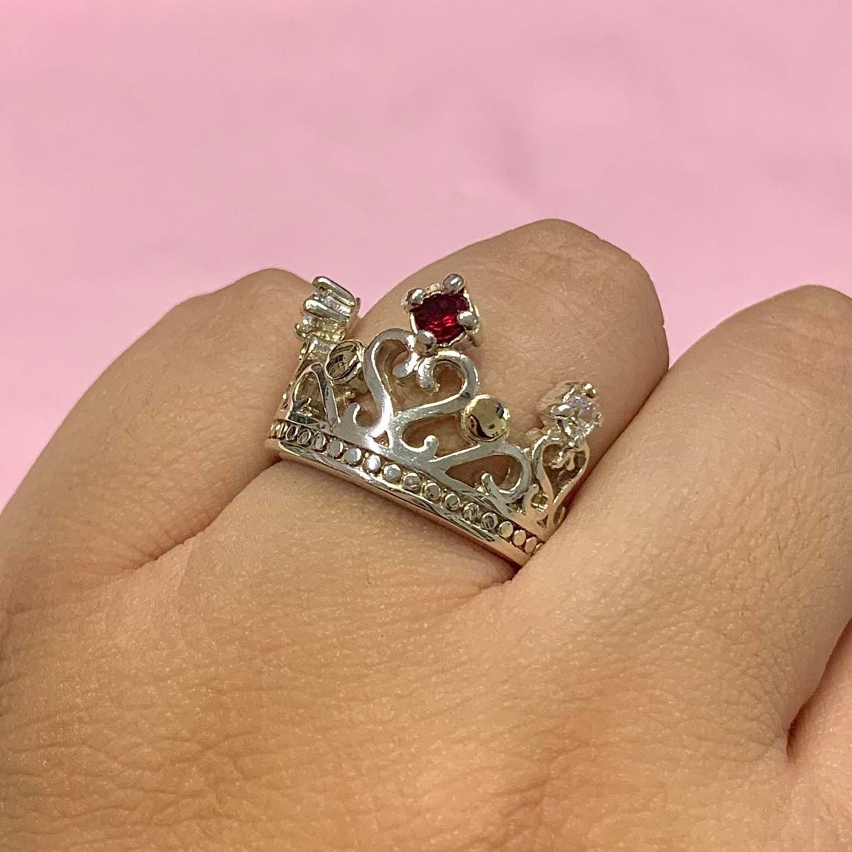 » anillo corona reina corazon con cubic Rubi-Blanco
