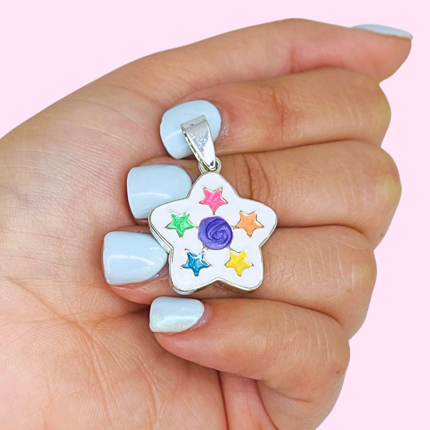 Dije Estrella Esmaltado Multicolor de Acero Blanco