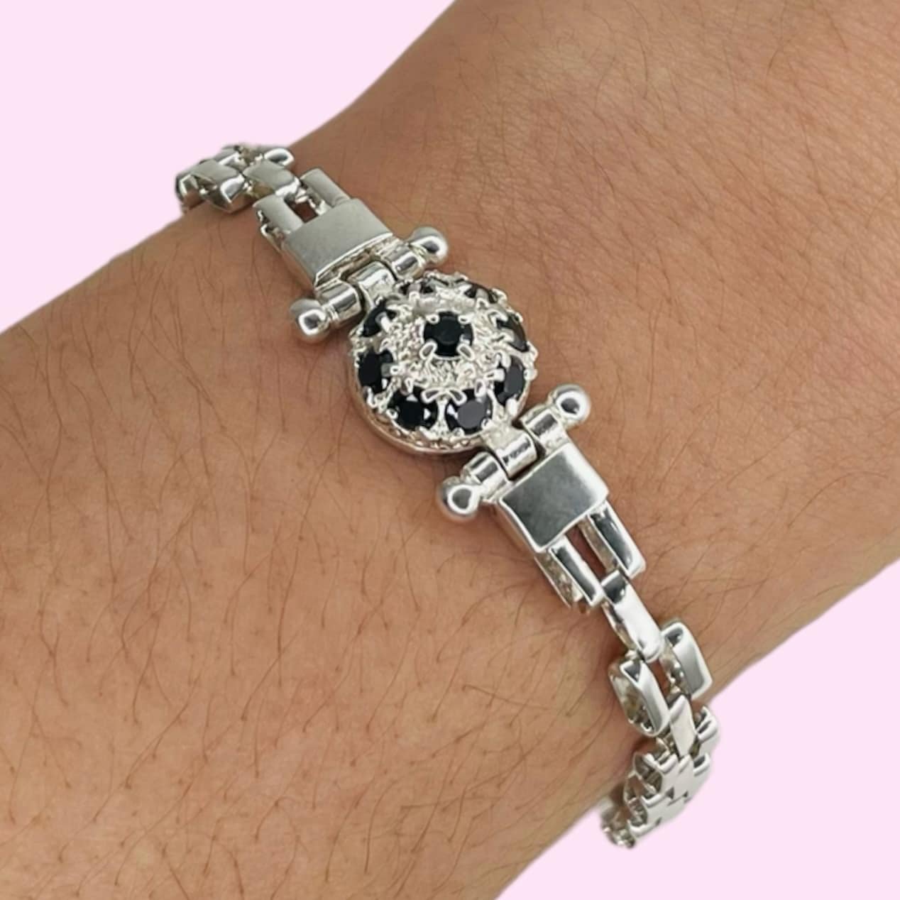Pulsera Panter Fino con Frutillita Negro de Plata 925
