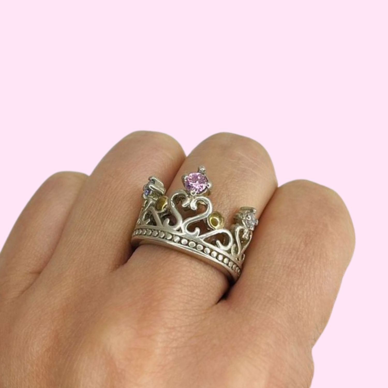 anillo corona reina corazon con cubic lila-blanco