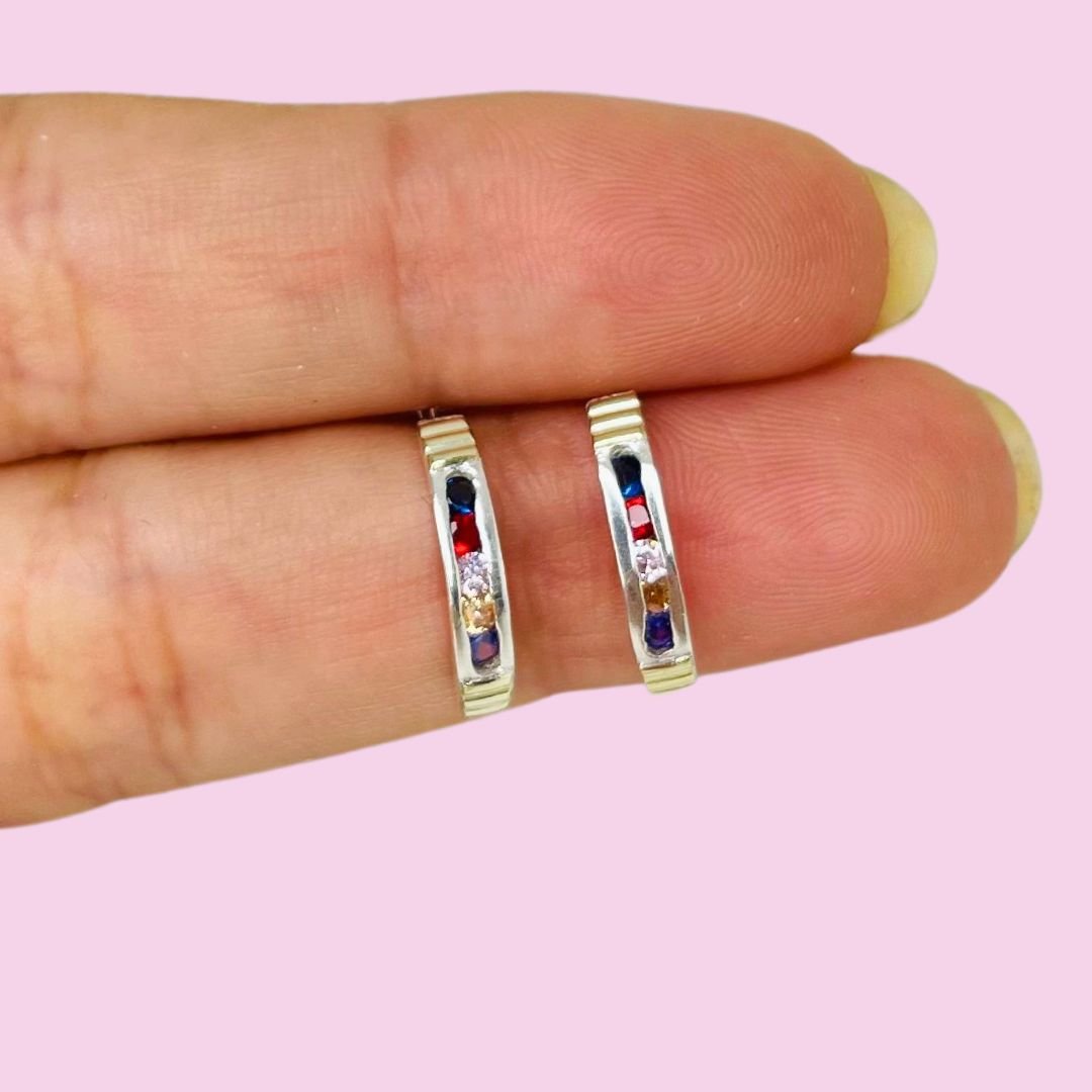 Artículo: AR 340-9Aros Medio Sinfin con piedras Multicolor Plata y Oro