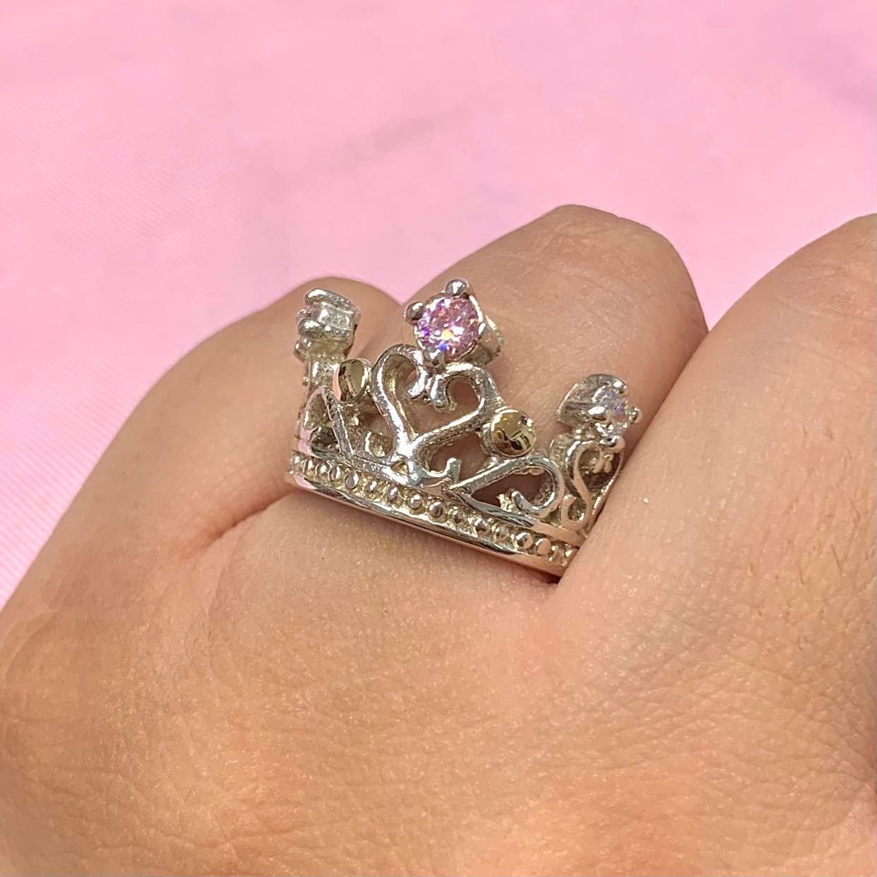 Anillo corona reina corazon con cubic Rosa-Blanco