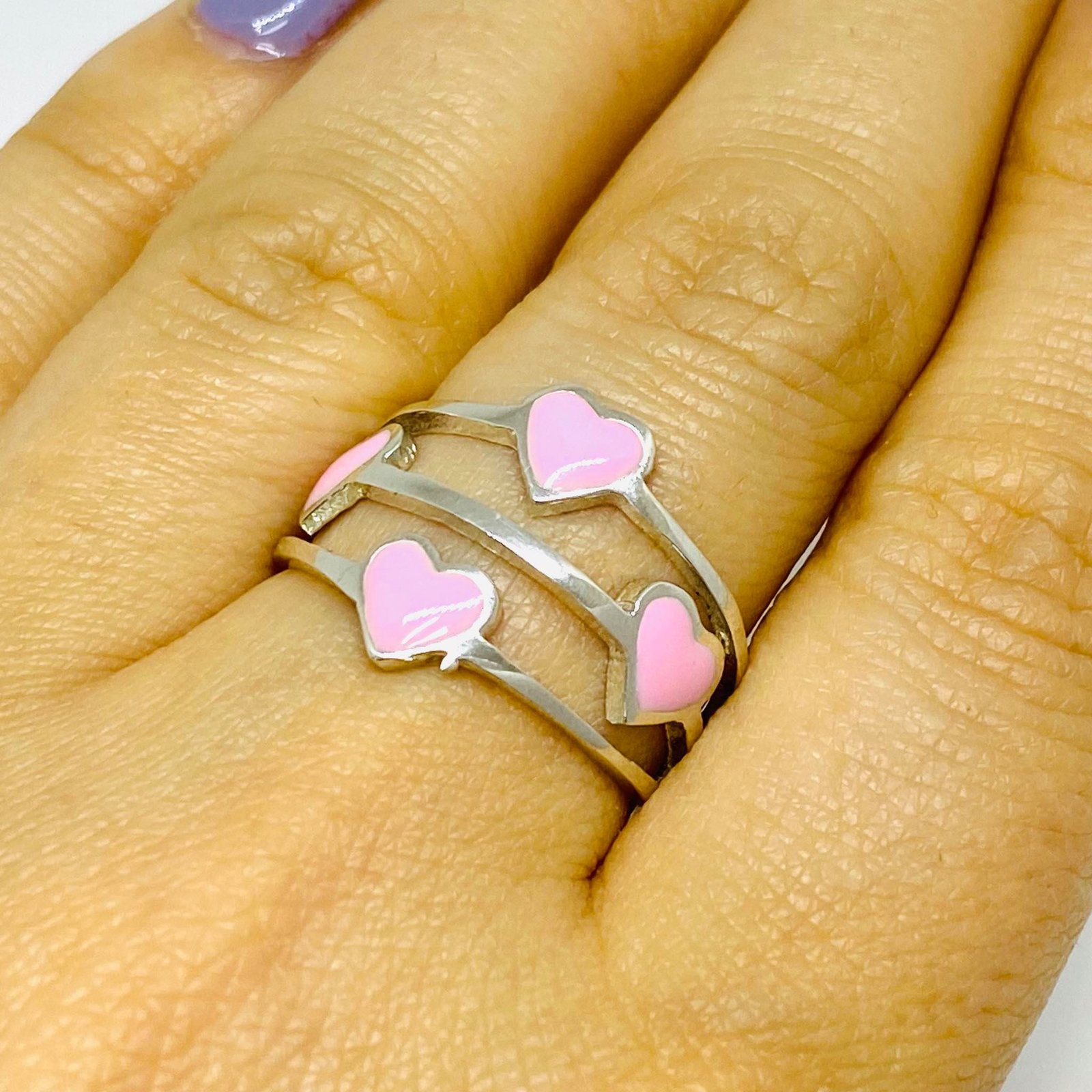 Anillo Corazones Rosa Esmaltados de Plata 925