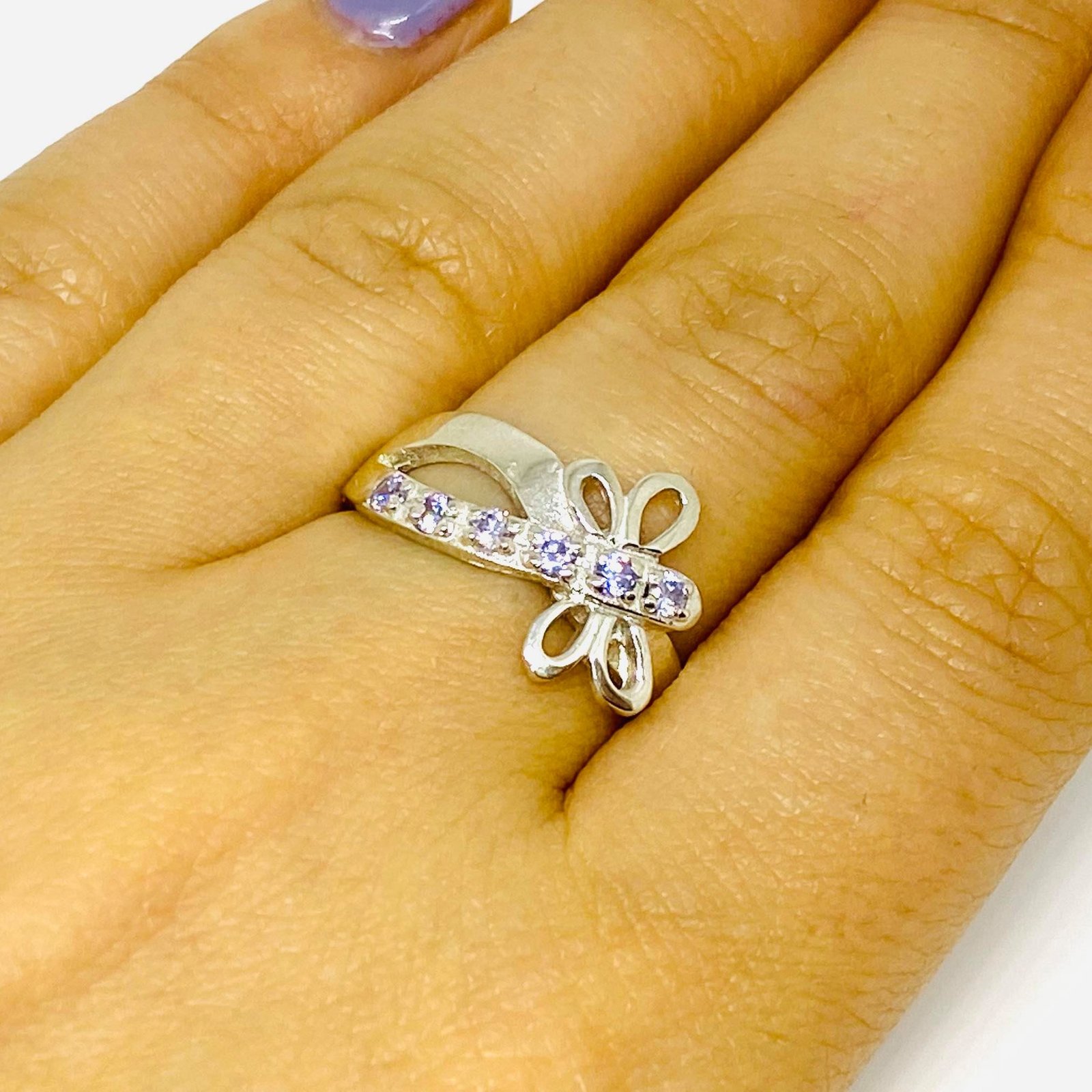 Anillo Libelula Con Micropave Lila de Plata 925
