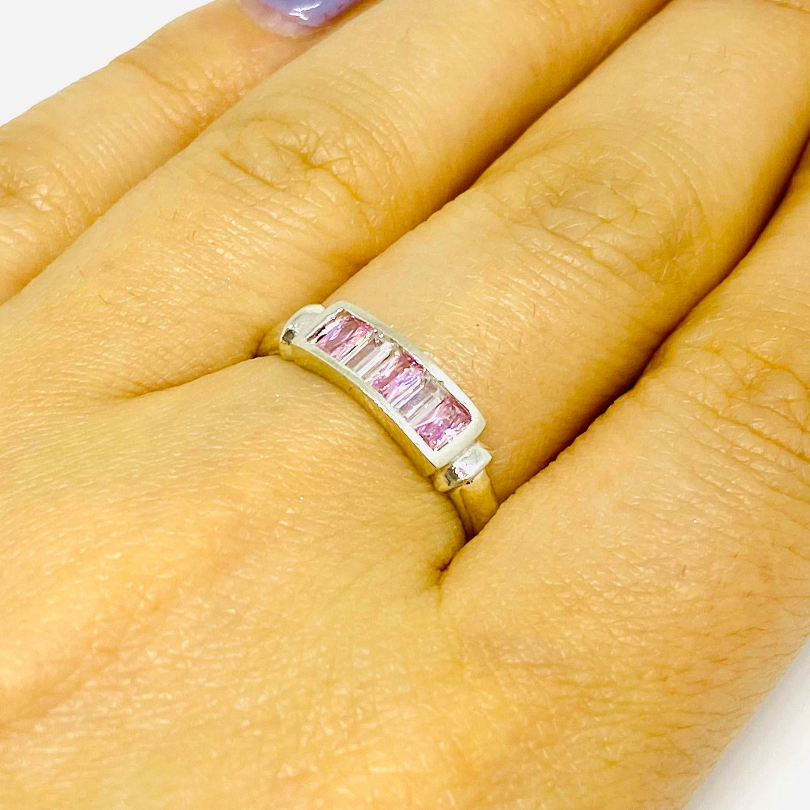 Anillo Con Piedras Baguette Blanco-Rosa Plata 925