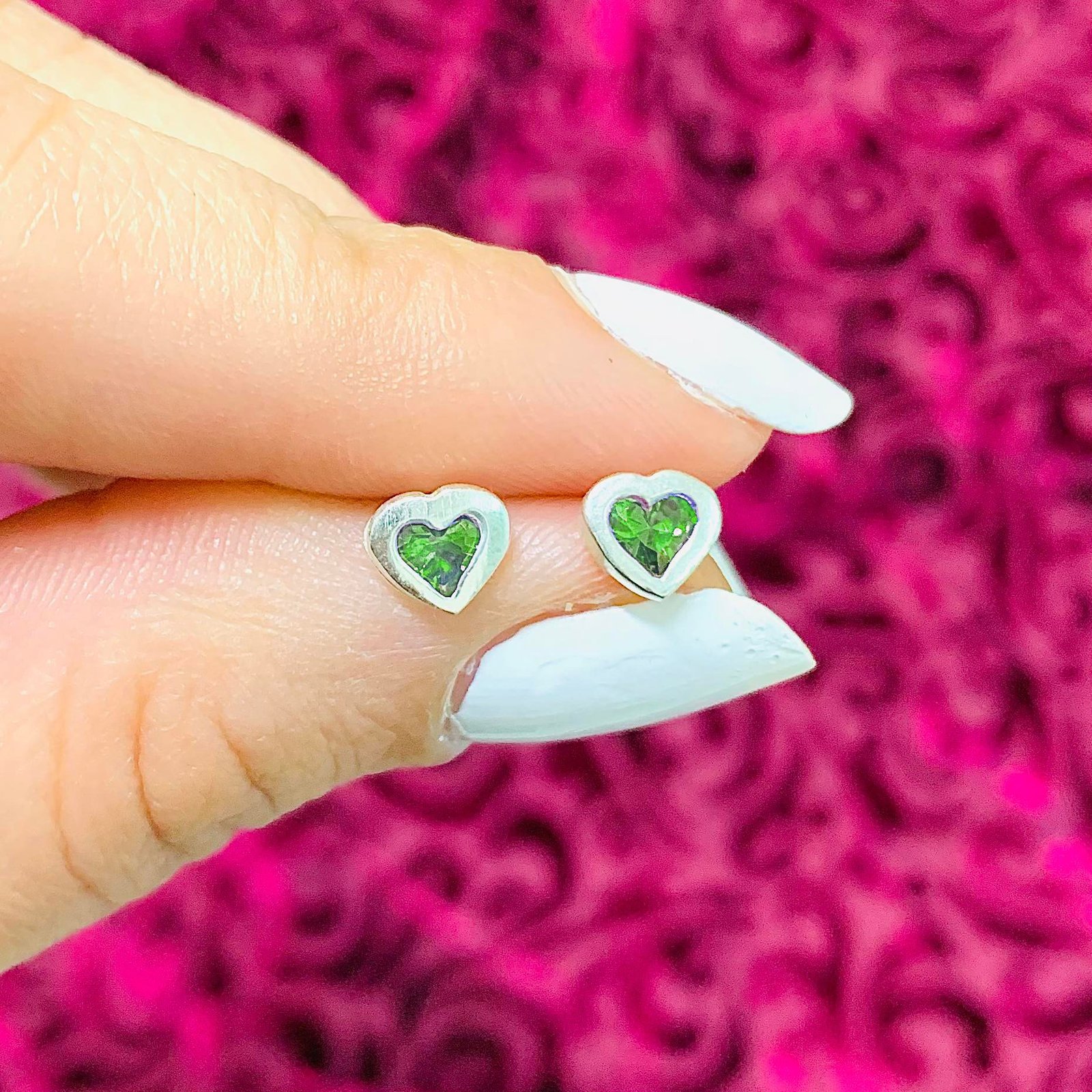 Aros corazoncito con piedra esmeralda de Plata 925